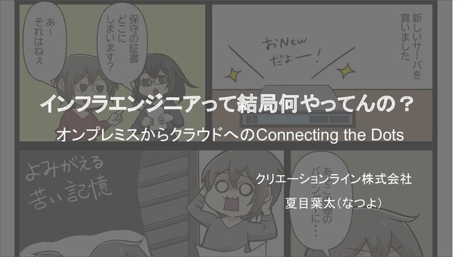 インフラエンジニアって結局何やってんの? オンプレミスからクラウドへのConnecting the Dots クリエーションライン株式会社 夏目葉太(なつよ)