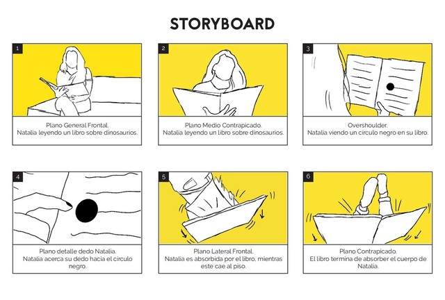 sólo se ve oscuridad. En Rotoscopia se ven letras y dibujos de dinosaurios. 7 Gran Plano General Frontal Se ve algo cayendo del cielo. 8 Plano General. Natalia se levanta del piso. Mira a su alrededor. 9 Plano Medio Frontal. Natalia mira hacia los lados asustada. Se percata que su vestuario ha cambiado un poco. No sabe en donde se encuentra. 10 Primer Plano Frontal. Natalia escucha un fuerte sonido, voltea a mirar a un costado y grita. 11 Plano detalle Lateral. Se ven los pies de un Brachiosaurus cami- nando. 12