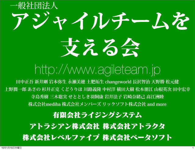 גࣜձࣾϨϕϧϑΝΠϒגࣜձࣾϕʔλιϑτ http://www.agileteam.jp 1 151݄15༵