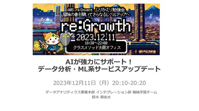 2023年12月11日 (月) に開催された『AWS re:Inventふりかえり勉強会 CM re:Growth 2023 in Osaka!』で発表した内容になります。