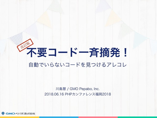 PHPカンファレンス福岡2018のLT発表資料です。 以下の資料の改訂版となります。 https://speakerdeck.com/nazonohito51/regasipurodakutodeiranaikodowozi-dong-dejian-tuketakatuta?slide=1