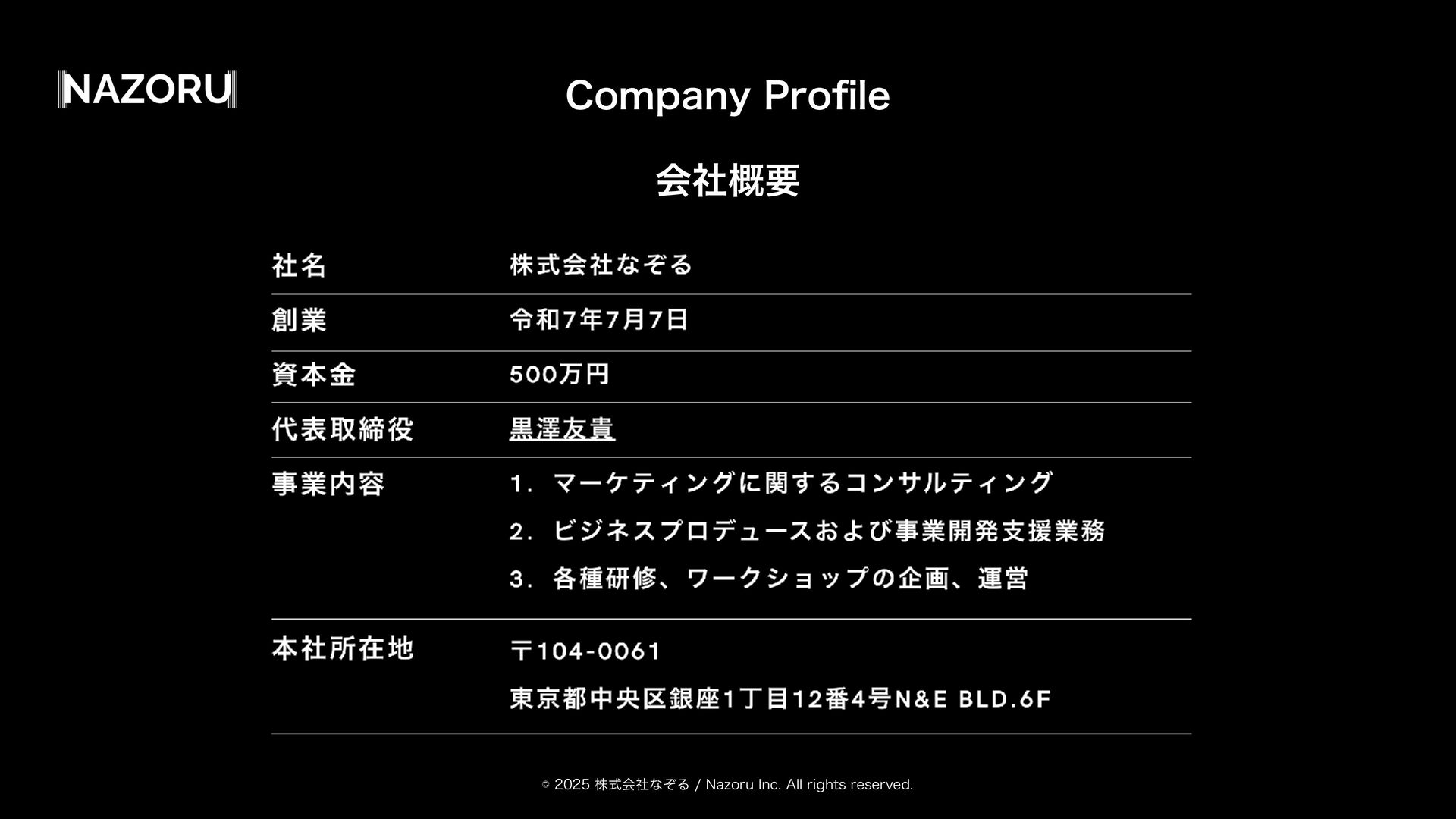 גࣜձࣾͳͧΔ/B[PSV*OD"MMSJHIUTSFTFSWFE $PNQBOZ1SP fi MF ձࣾ֓ཁ