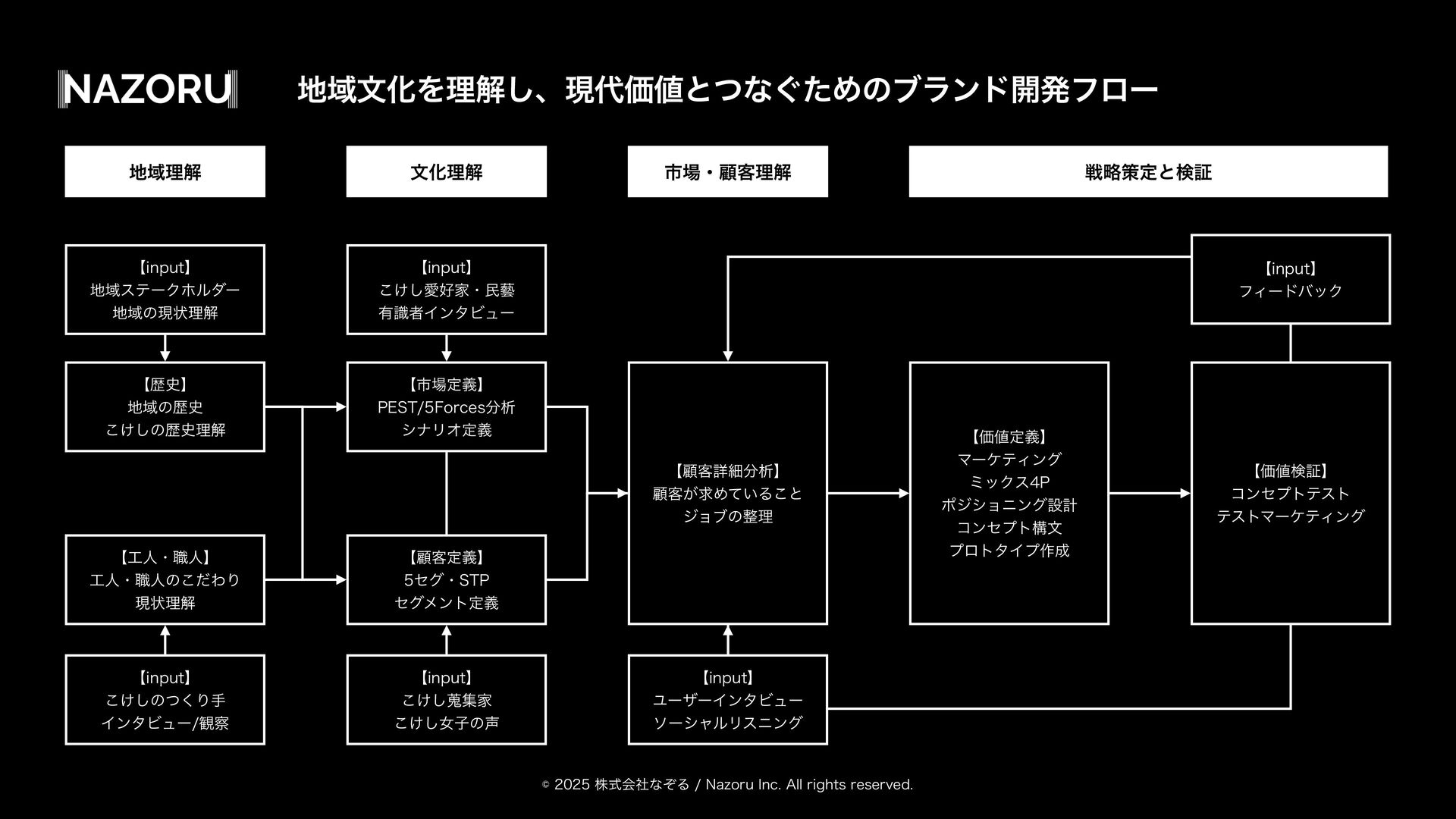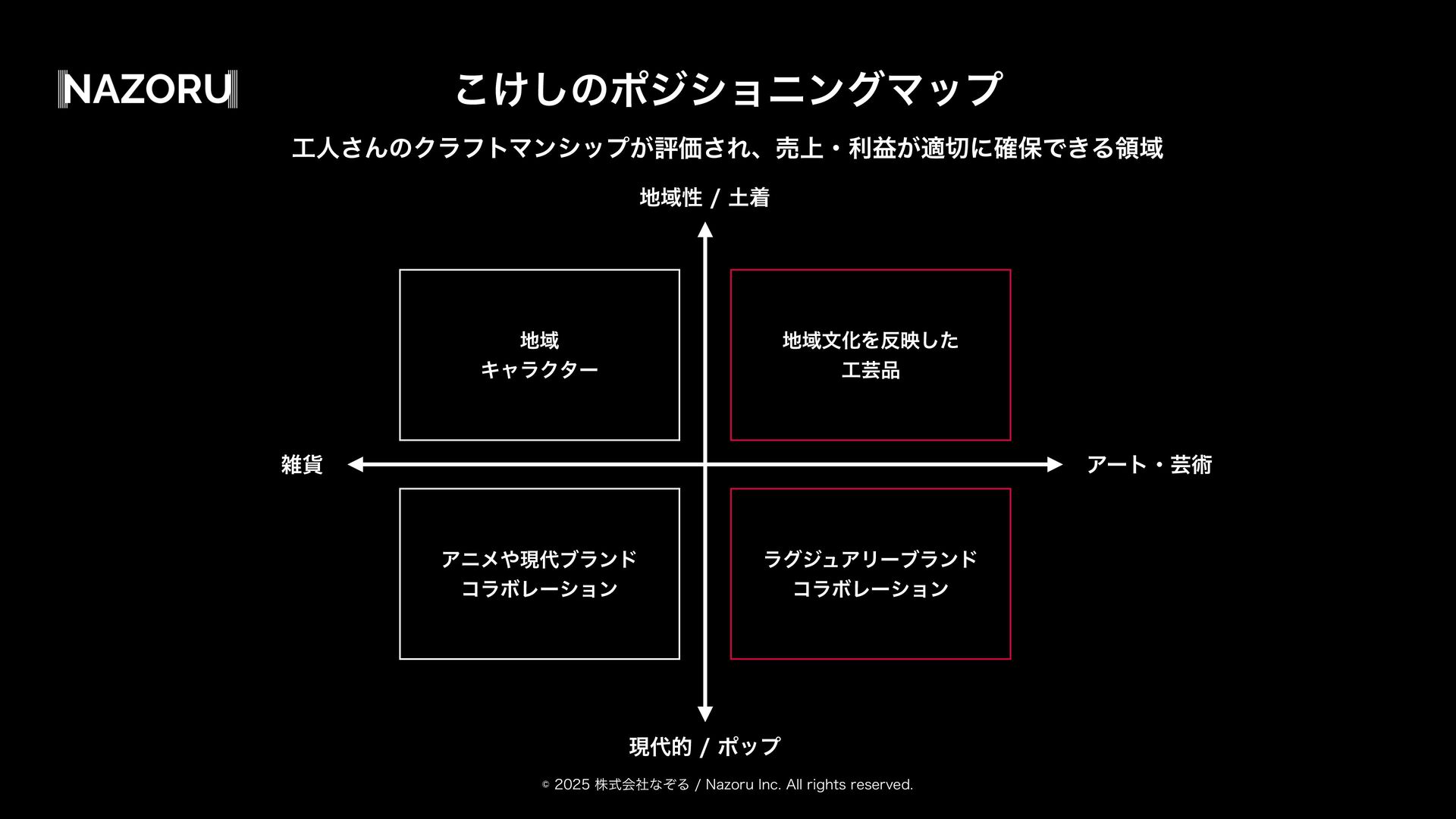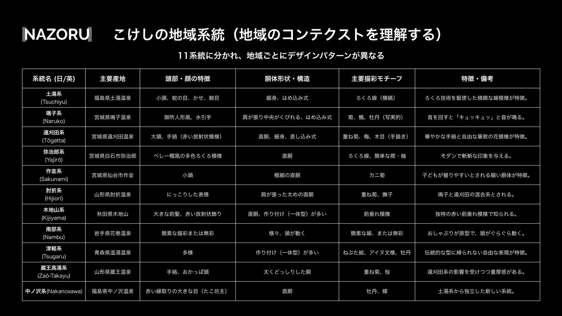 実践事例として、東北の伝統工芸「こけし」のブランド開発プロジェクトを紹介し、地域の歴史・文化的コンテクストを理解した上で、工人(つくり手)と蒐集家(支え手)双方の論理を統合し、持続可能な価値創造を実現する戦略設計プロセスを解説しています。こけしの11系統の地域特性、歴史的変遷、ステークホルダー構造を丁寧に読み解き、雑貨カテゴリーではなく工芸品としての適正なポジショニングを導き出した過程は、文化人類学的アプローチの実践例です。