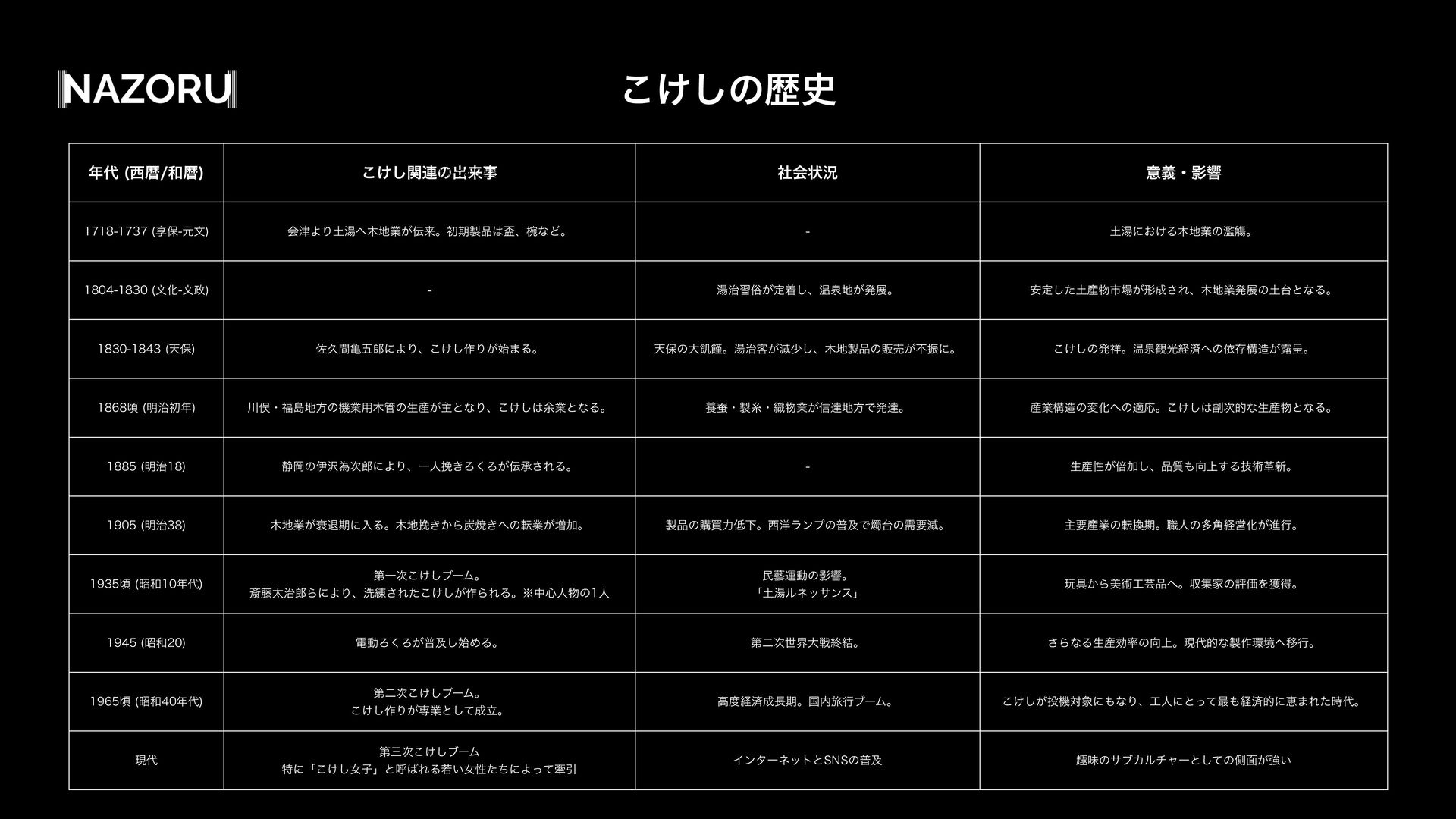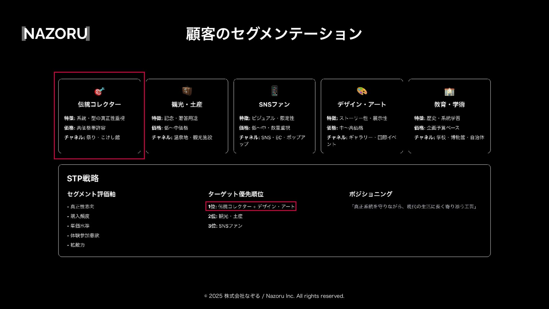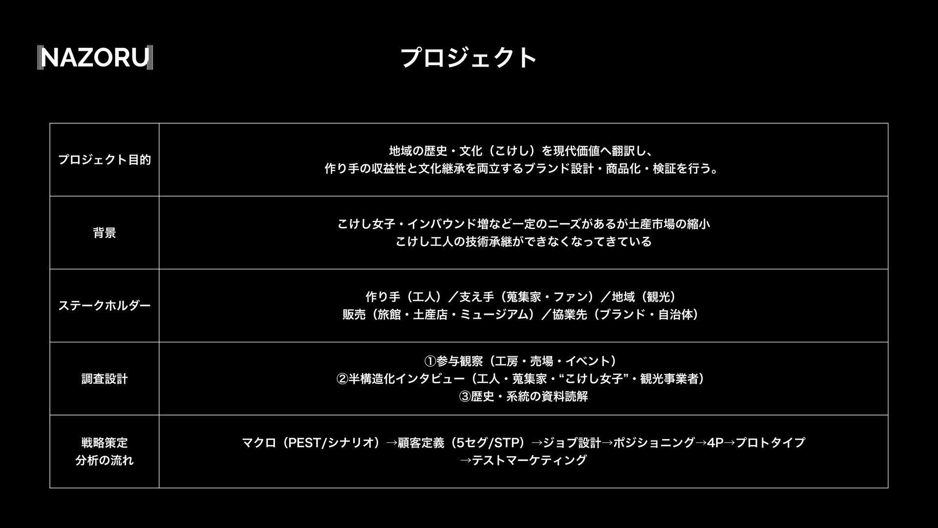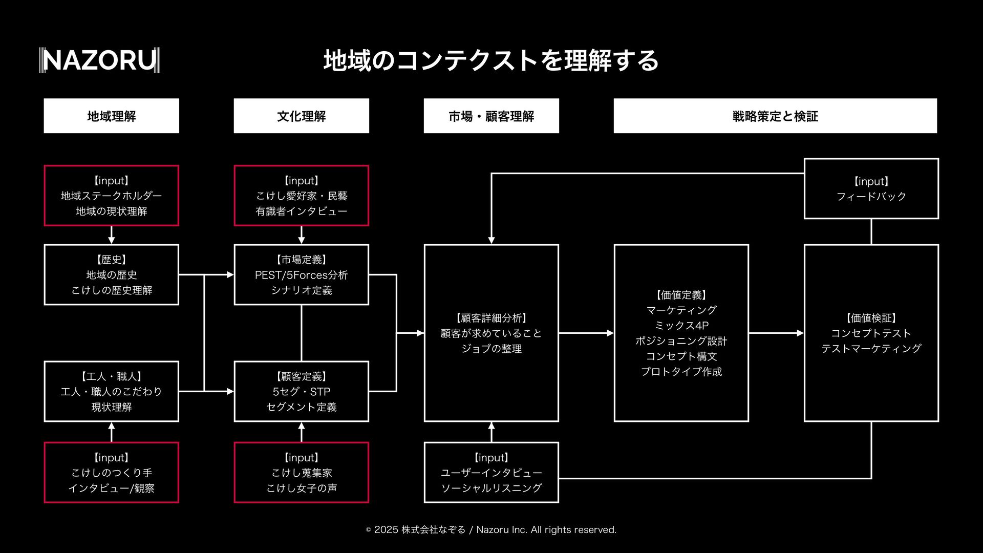 実践事例として、東北の伝統工芸「こけし」のブランド開発プロジェクトを紹介し、地域の歴史・文化的コンテクストを理解した上で、工人(つくり手)と蒐集家(支え手)双方の論理を統合し、持続可能な価値創造を実現する戦略設計プロセスを解説しています。こけしの11系統の地域特性、歴史的変遷、ステークホルダー構造を丁寧に読み解き、雑貨カテゴリーではなく工芸品としての適正なポジショニングを導き出した過程は、文化人類学的アプローチの実践例です。