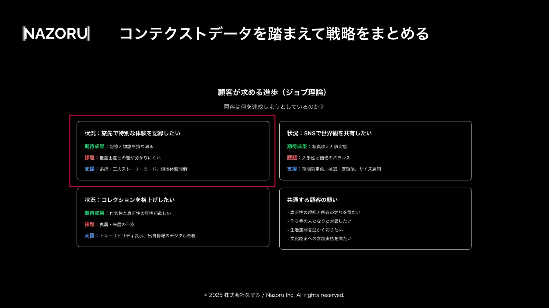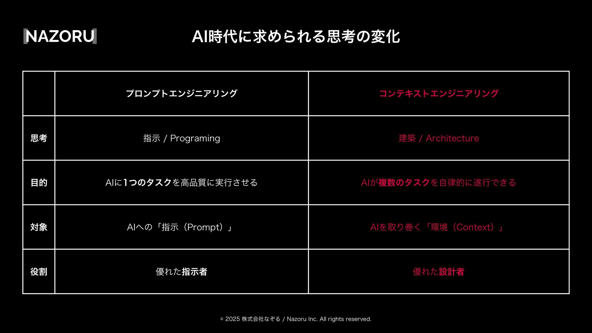 生成AIの進化により、マーケターの役割は「正確なプロンプトを書く」ことから「AIが自律的に動ける環境を設計する」ことへと変化しています。本資料では、プロンプトエンジニアリングからコンテキストエンジニアリングへの思考転換を軸に、データでは見えない顧客の感情・欲求・社会文化の仕組みをどう理解し、マーケティング戦略に活かすかを解説しています。