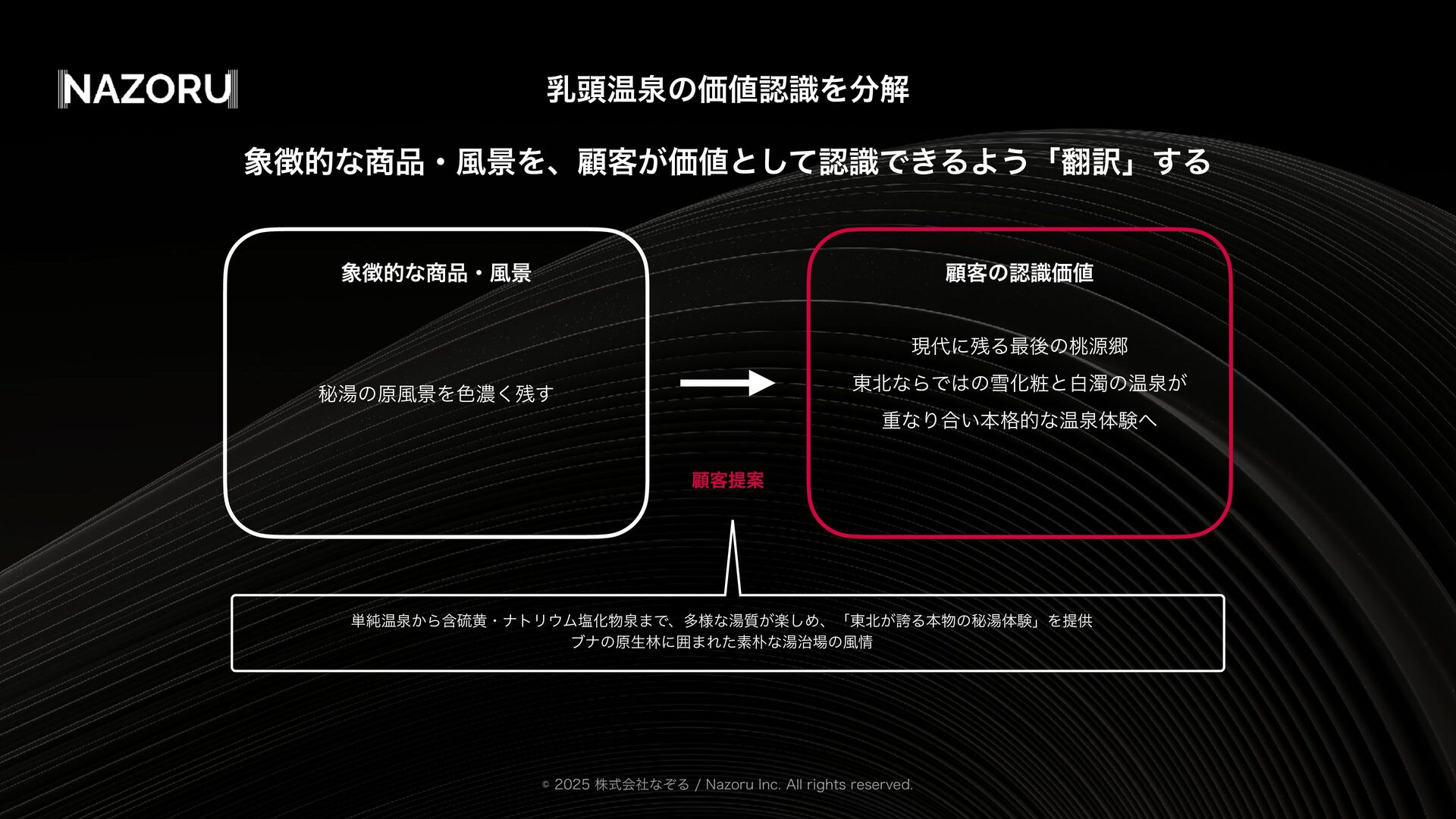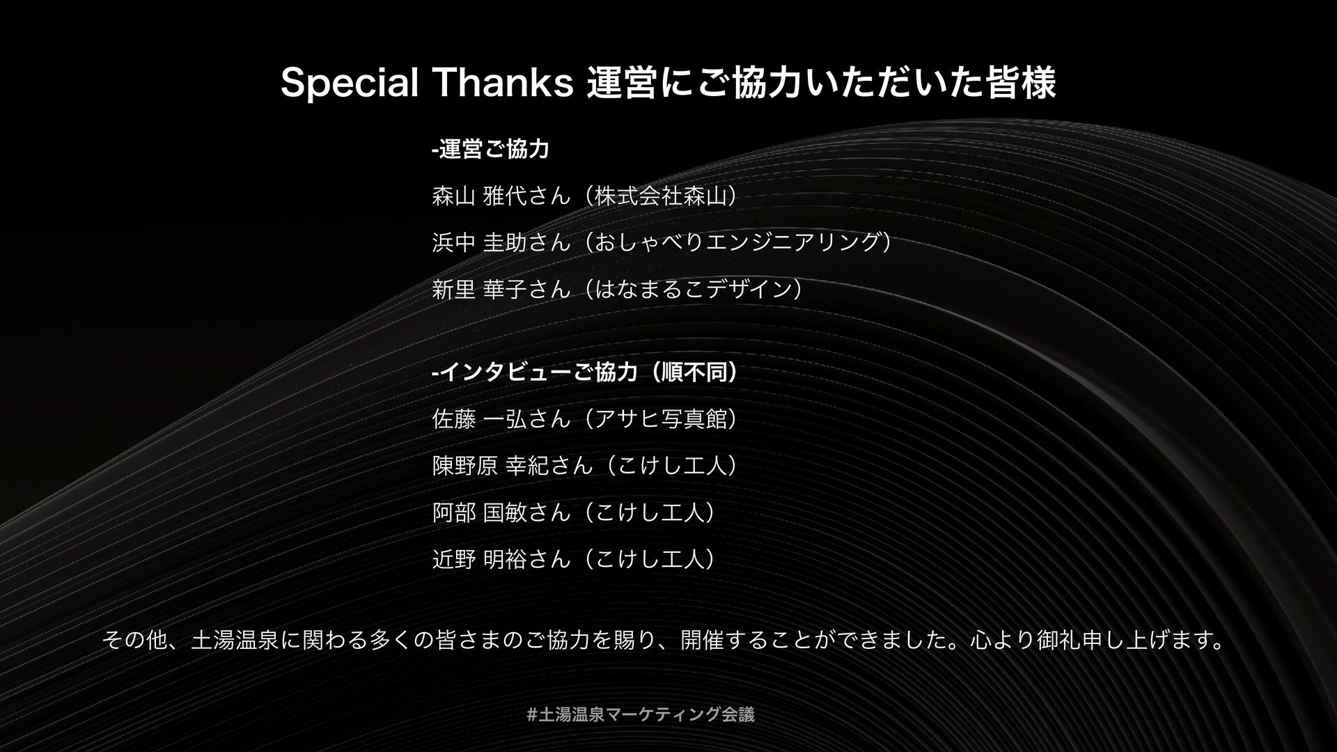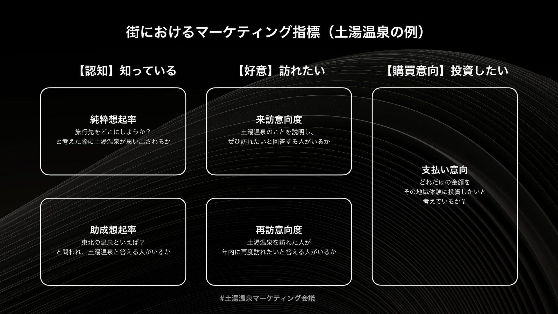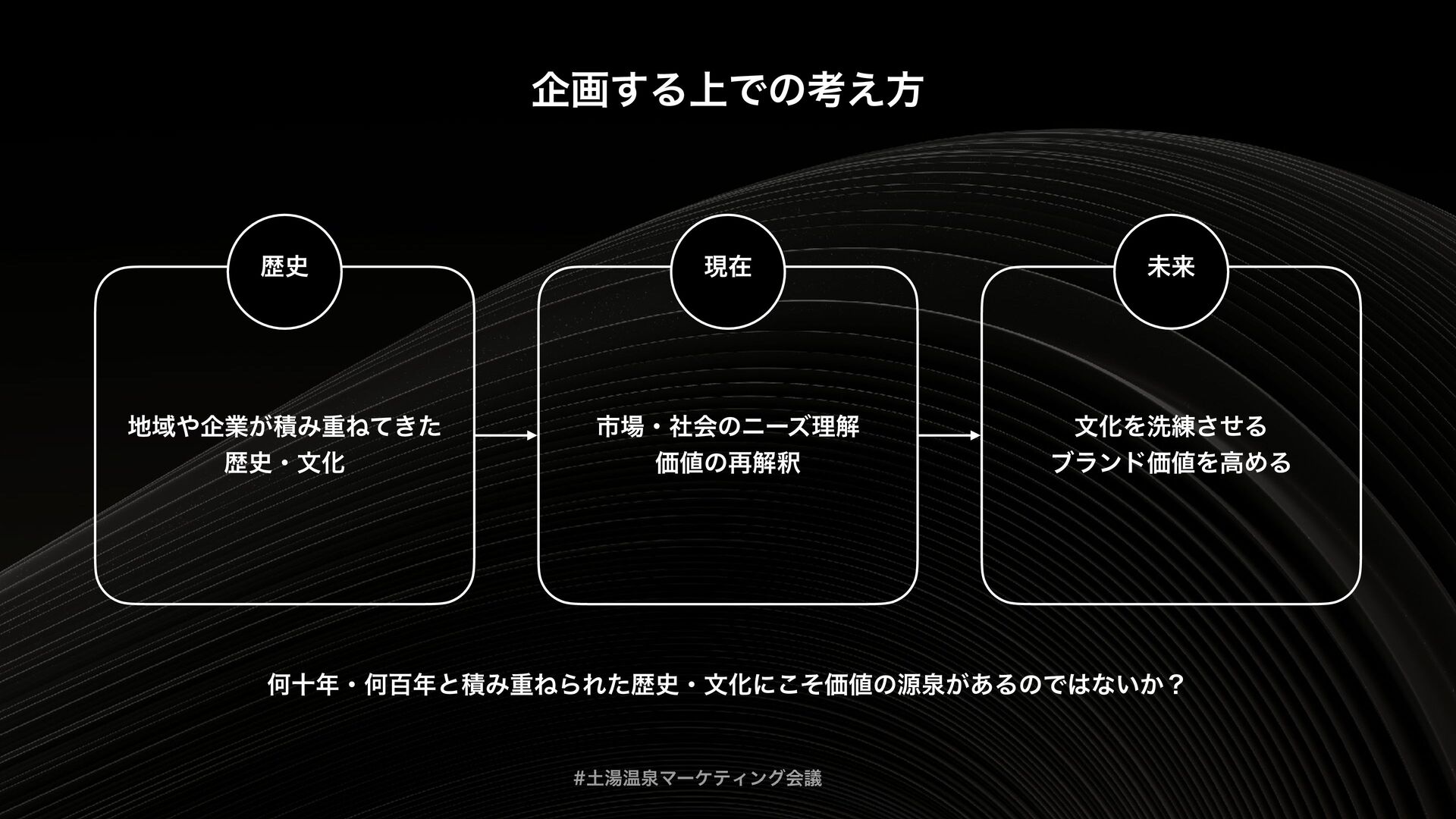 土湯温泉マーケティング会議は、「福島を“通過点”ではなく“目的地”にする」というテーマをもとに、地域の歴史・文化を資源として再編集し、マーケティング企画までつなげるための実践知を共有する場として開催されました。