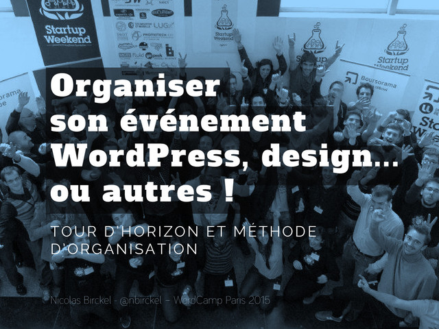 Atelier du WordCamp Paris 2015 sur l'organisation d'événement : tour d'horizon des typologies d'événement et méthode d'organisation !