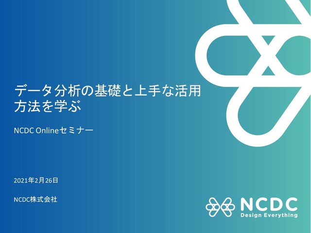 こんなこと、ありませんか? 2. 標準プロセス「CRISP-DM」 1. Business Understanding(ビジネスの理解) 2. Data Understanding(データの理解) 3. Data Preparation (データの準備) 4. Modeling(モデリング) 5. Evaluation(評価) 6. Deployment(展開) 3. 知っていて損のないデータ分析のツール「KNIME(ナイム)」 3. まとめ 1. もう一度「データドリブン」 2. 今日言いたいこと 3. NCDCの分析案件事例ご紹介 8