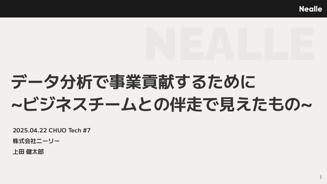 2025.04.22 CHUO Tech #7 株式会社ニーリー 上田 健太郎 NEALLE データ分析で事業貢献するために ~ビジネスチームとの伴走で見えたもの~