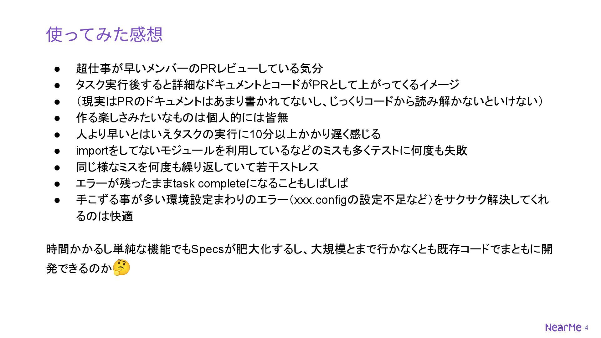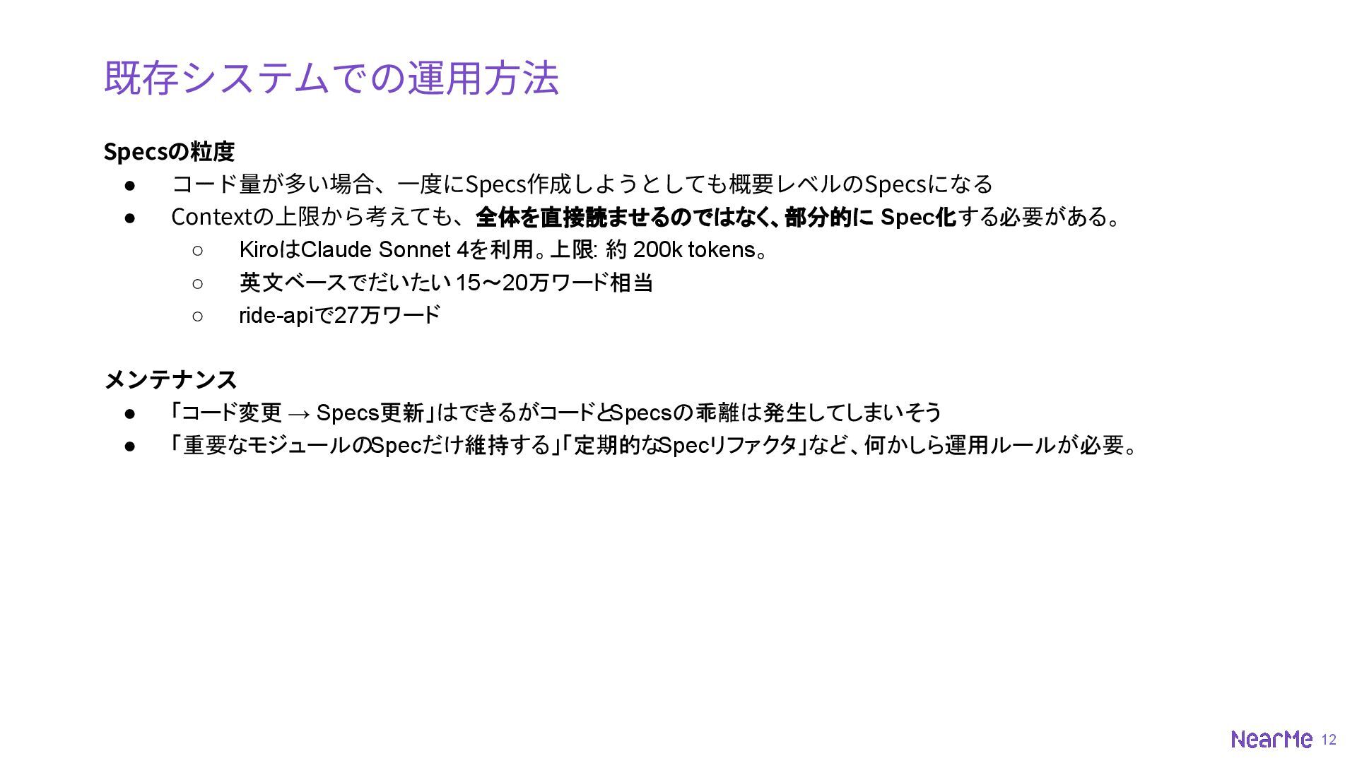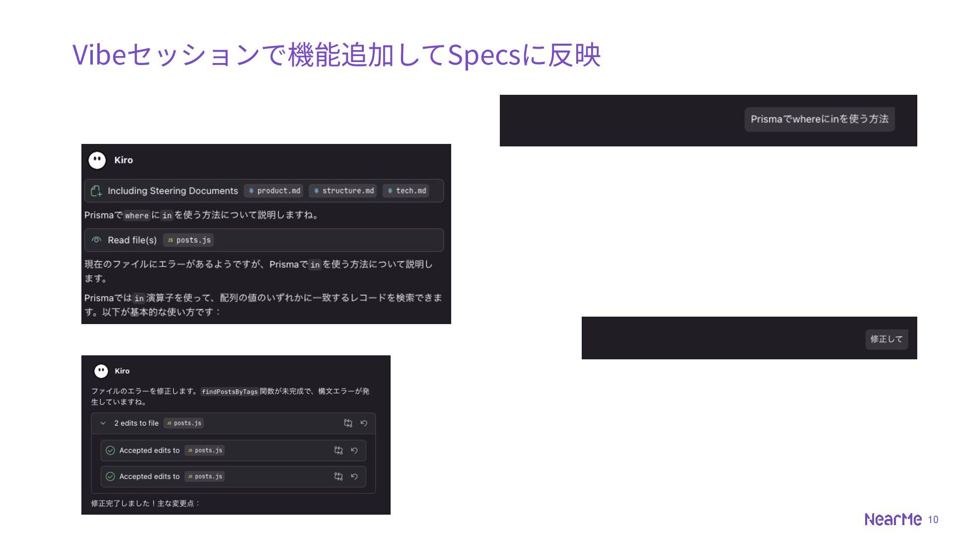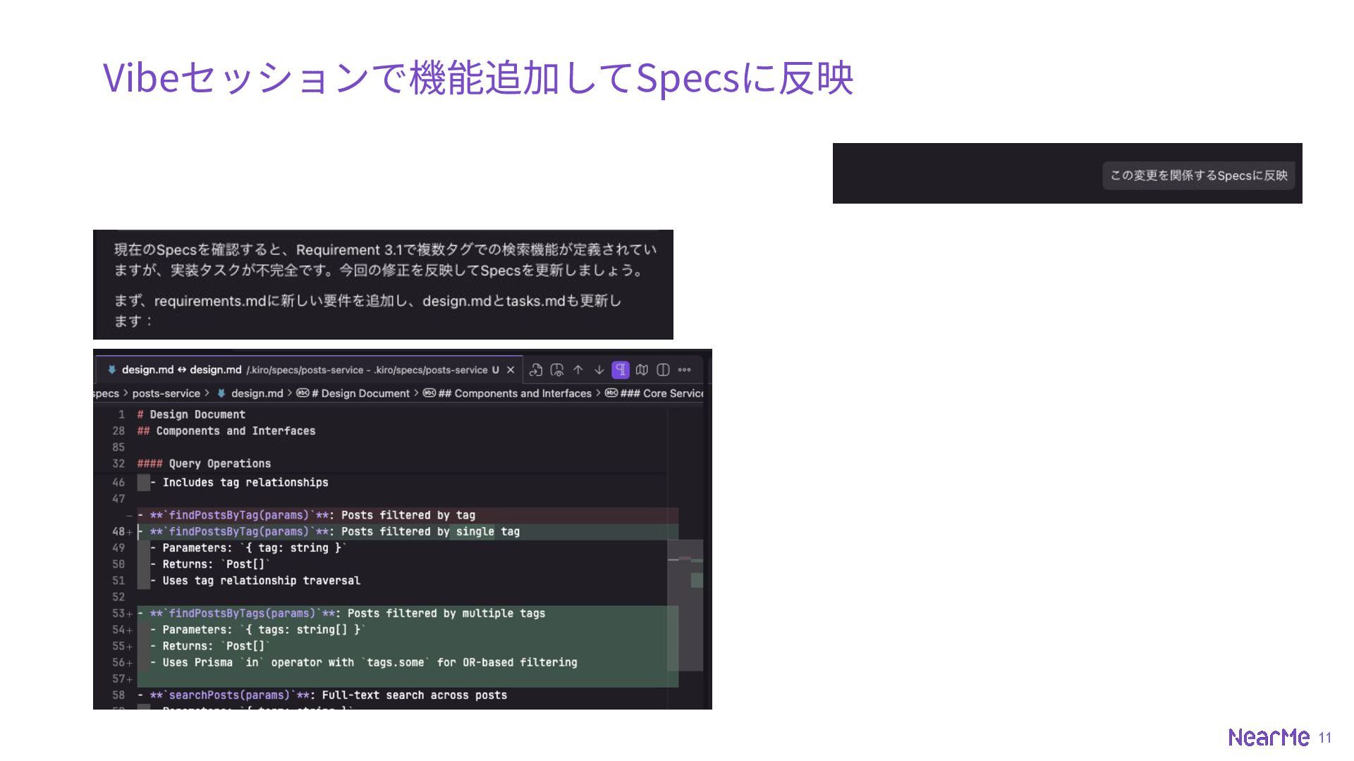 AWSが提唱する新しいIDE「Kiro」を実際に触ってみたハンズオン資料です。 「AI coding with spec-driven development」を掲げ、仕様書作成から実装・自動化までAIが支援するKiroの特徴や、Copilot・Cursor・Claudeとの比較、実際に試した際の課題や利点についてまとめています。 第131回NearMe技術勉強会(2025年9月25日)での発表資料。