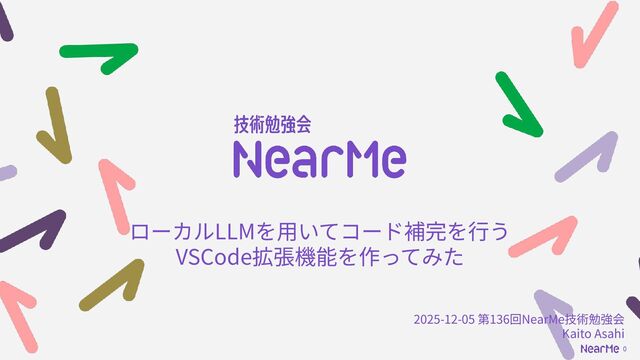 2025年12月5日に開催された「第136回NearMe技術勉強会」の登壇資料です。