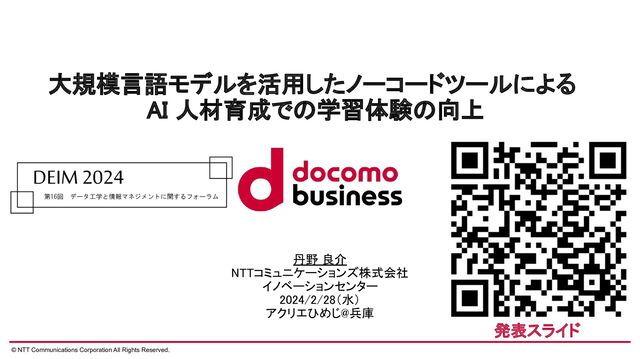 1. © NTT Communications Corporation All Rights Reserved. 大規模言語モデルを活用したノーコードツールによる