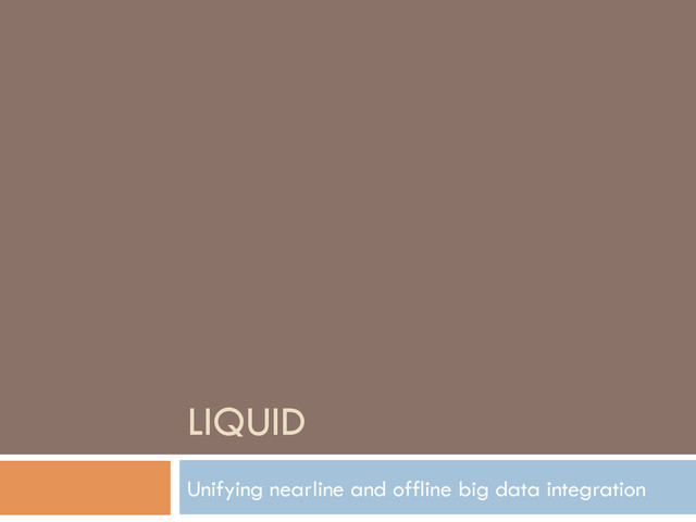 In this paper, we describe Liquid, a data integration stack that provides low latency data access to support near real-time in ad- dition to batch applications. It supports incremental processing, and is cost-efficient and highly available. Liquid has two layers: a processing layer based on a stateful stream processing model, and a messaging layer with a highly-available publish/subscribe sys- tem. We report our experience of a Liquid deployment with back- end data systems at LinkedIn, a data-intensive company with over 300 million users.