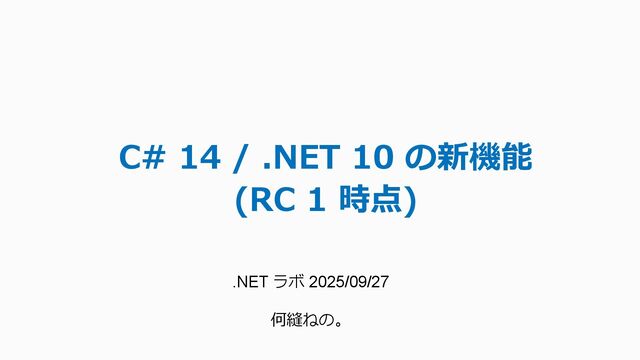 C# 14 / .NET 10 の新機能 (RC 1 時点) .NET