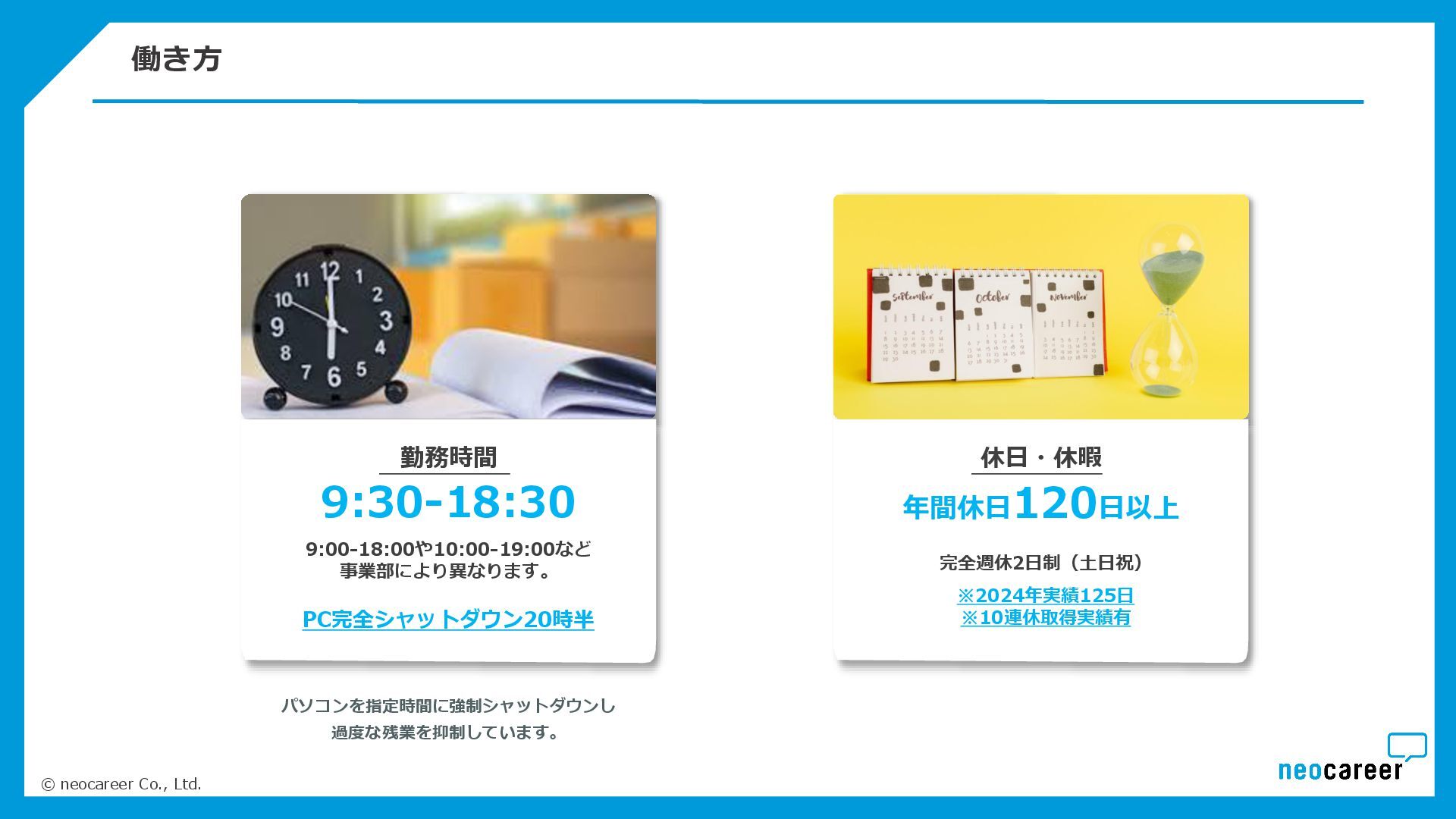 11. 会社紹介資 料 福利厚生 & 人事制度 © neocareer Co., Ltd. •