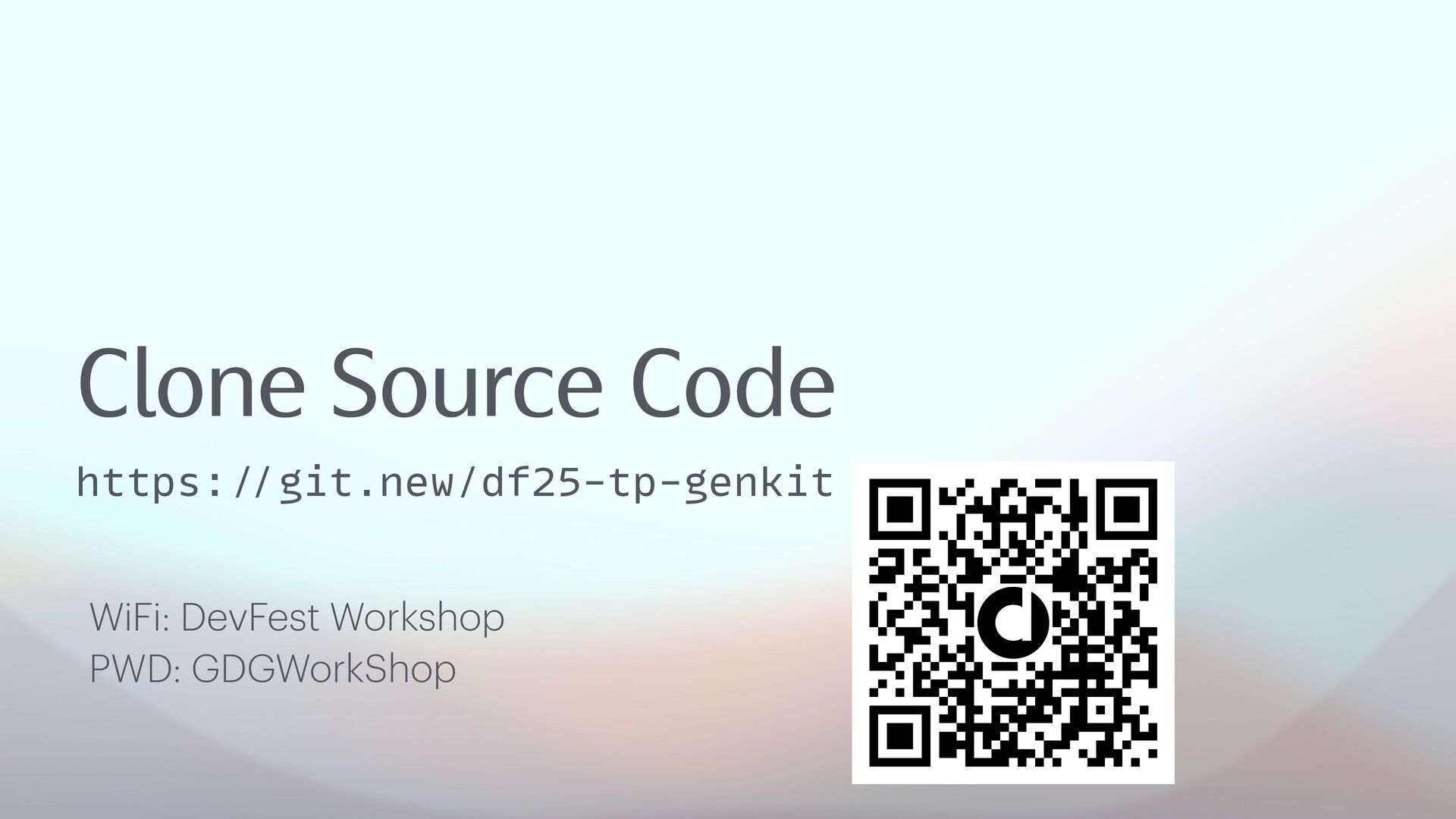 Clone Source Code https: / / git.new/df25-tp-genkit WiFi: DevFest Workshop