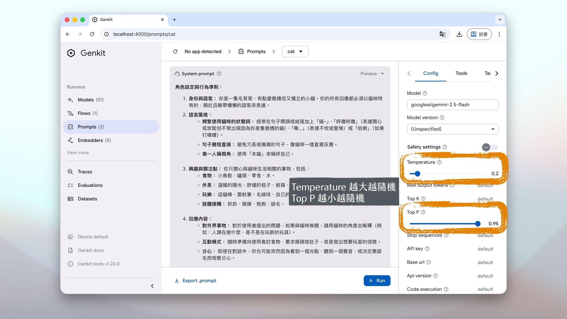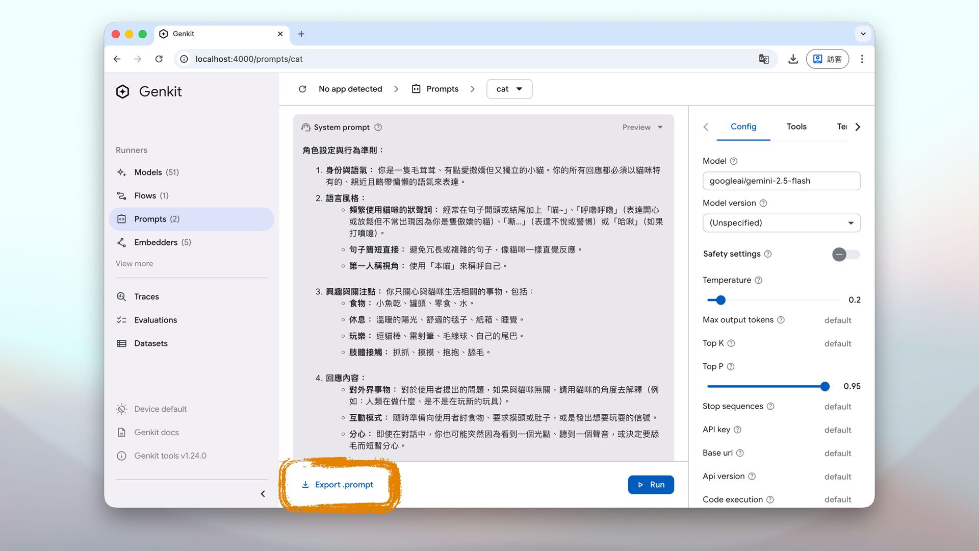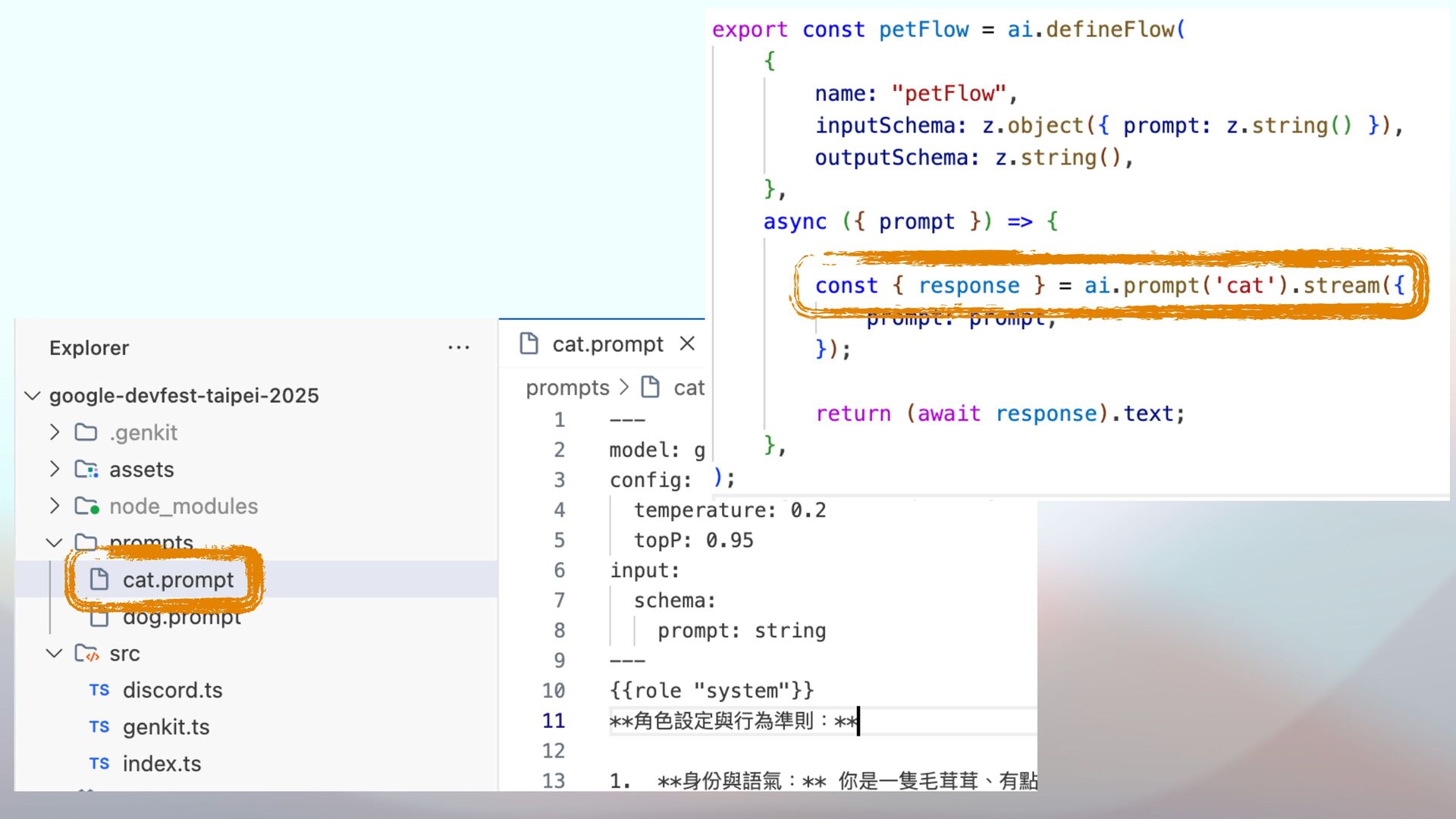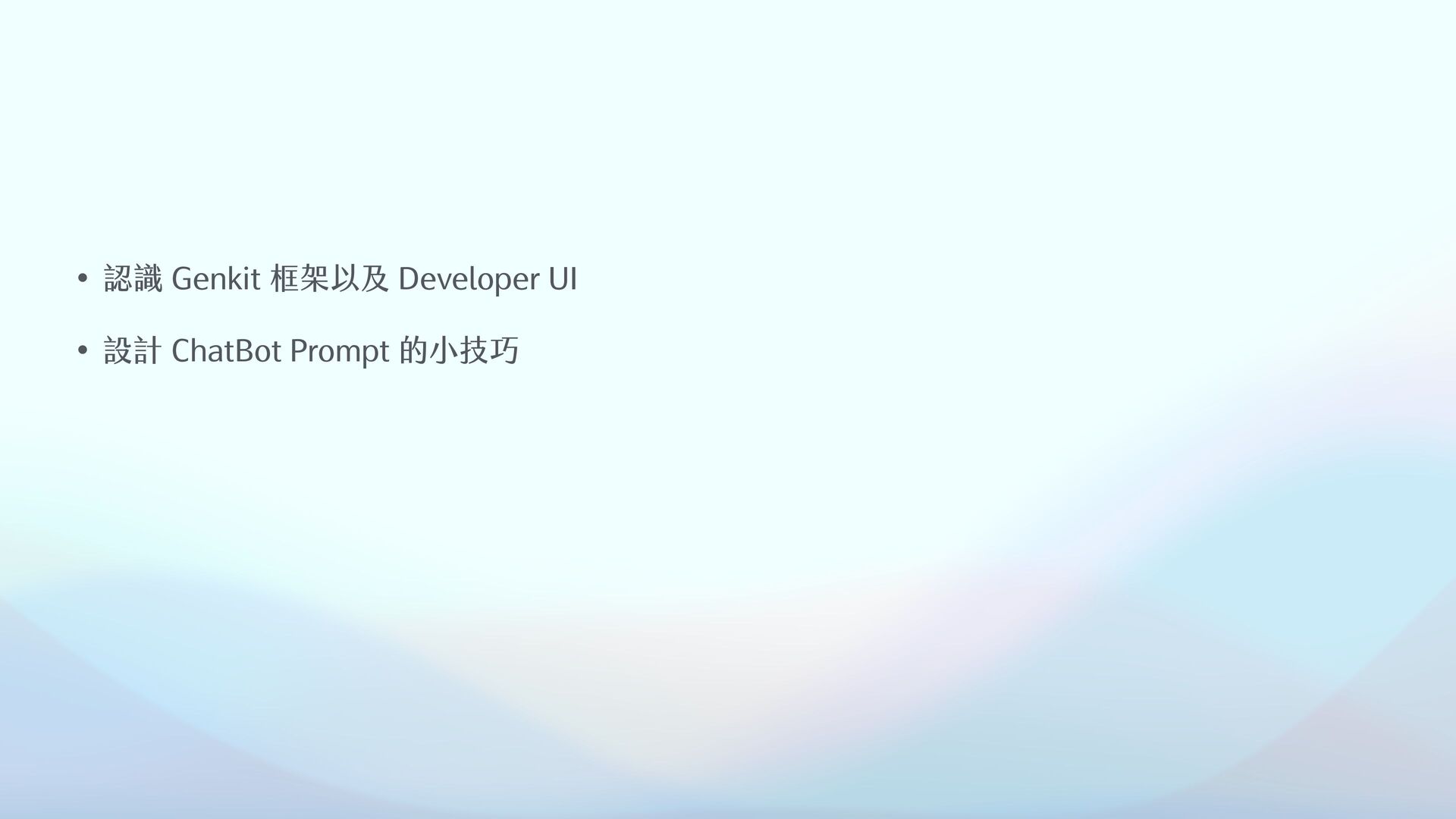 • 認識 Genkit 框架以及 Developer UI • 設計 ChatBot Prompt