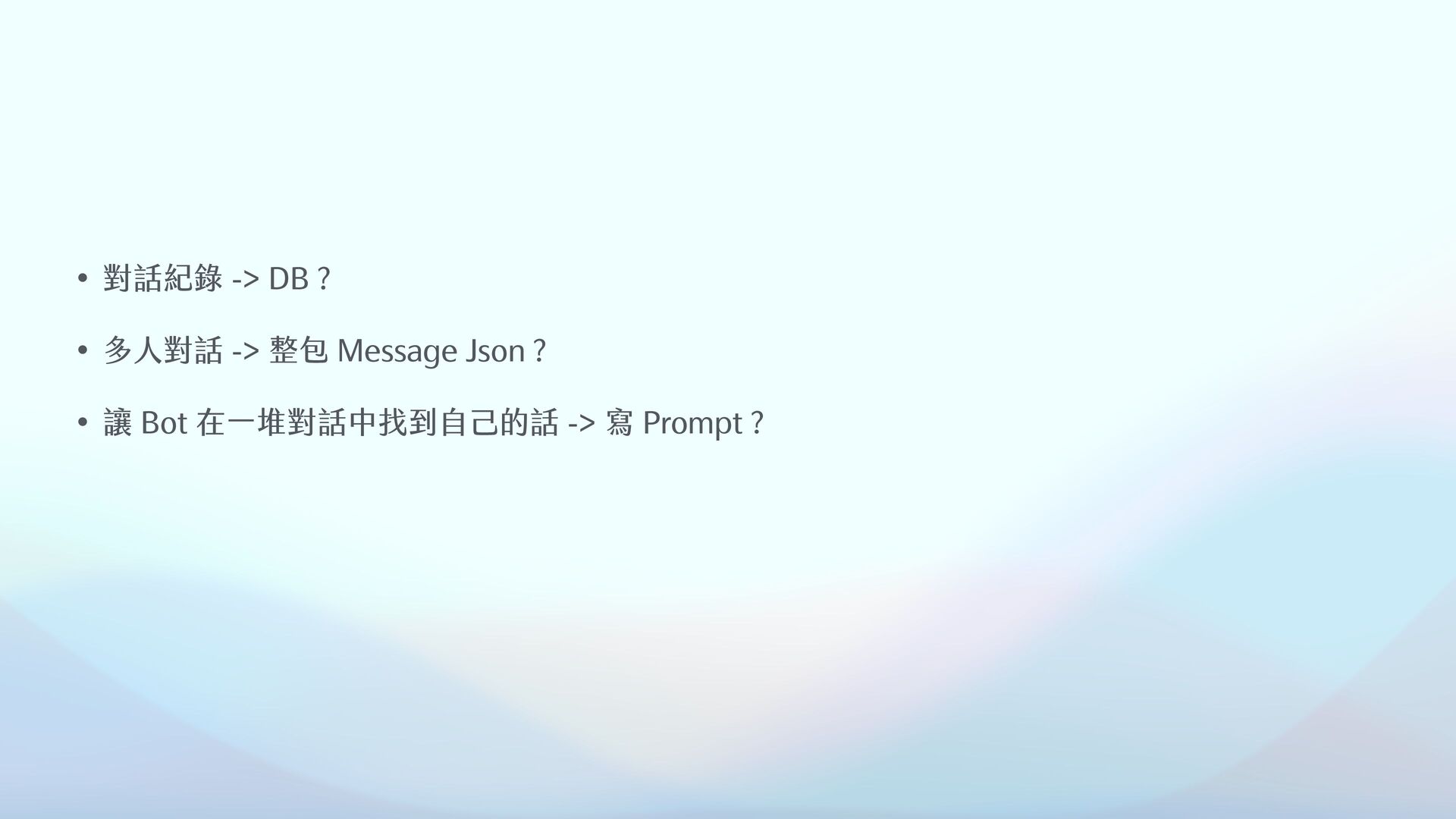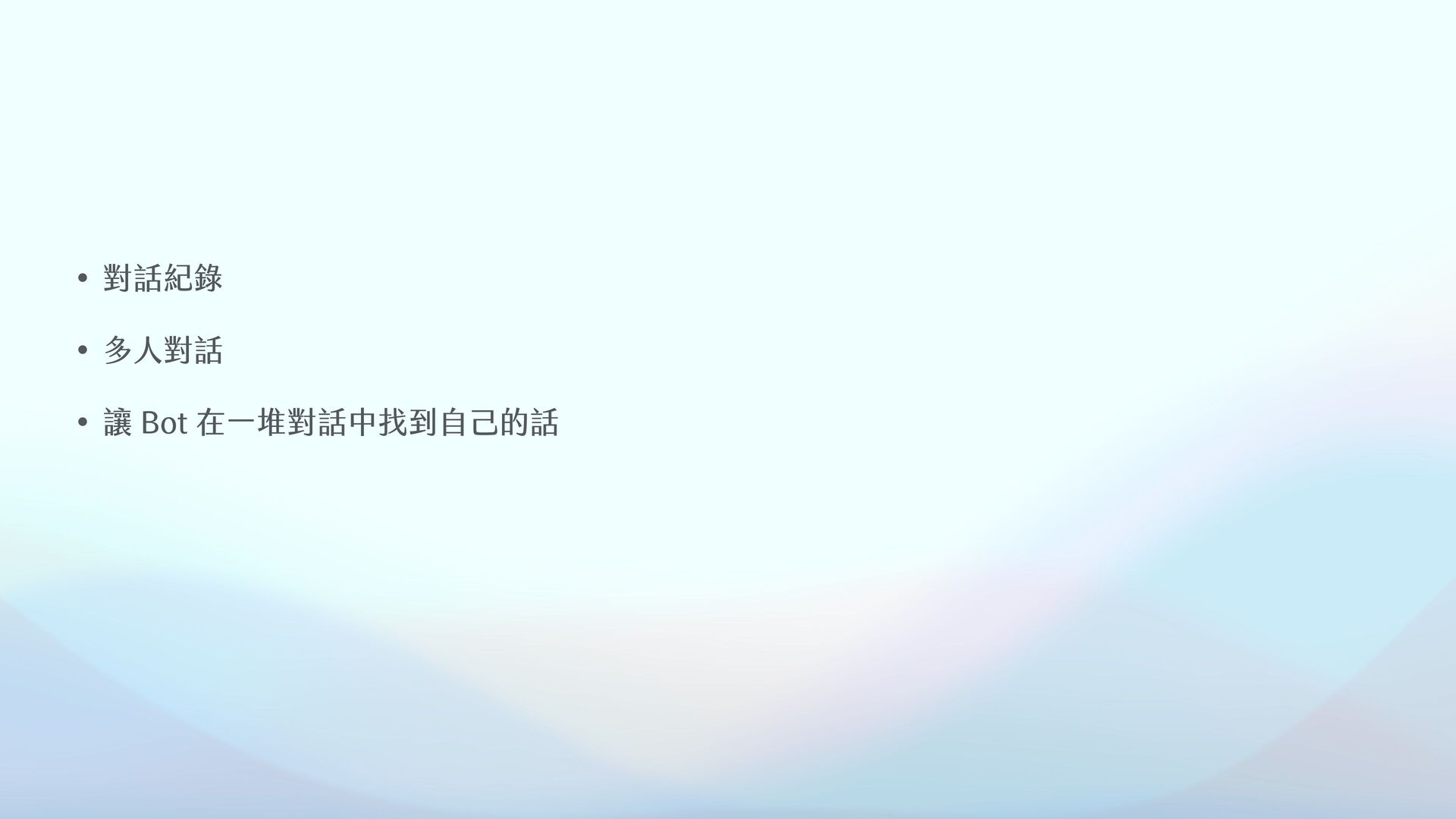• 對話紀錄 • 多人對話 • 讓 Bot 在一堆對話中找到自己的話