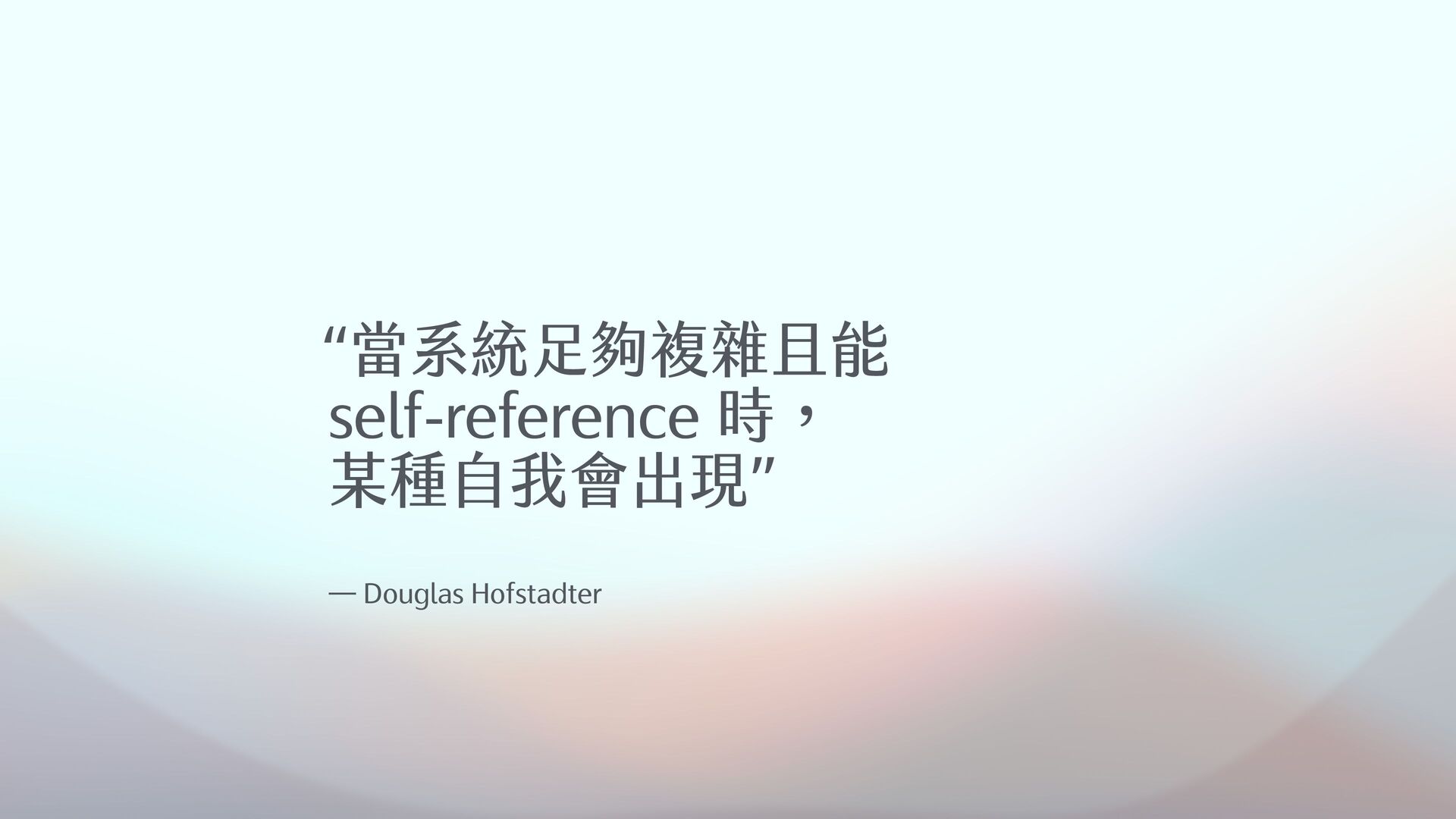 — Douglas Hofstadter “當系統足夠複雜且能 self-reference 時, 某種自我會出現”