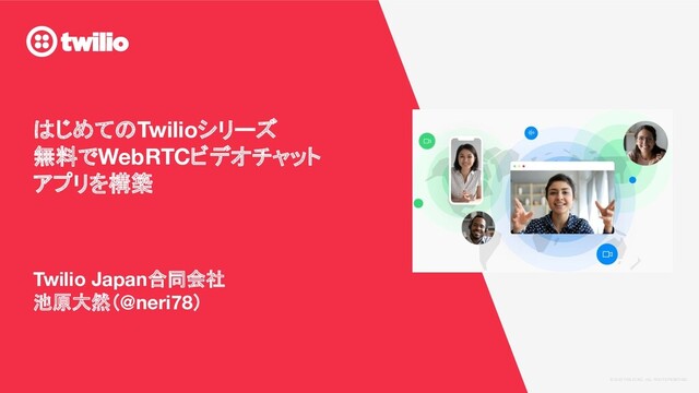INC. ALL RIGHTS RESERVED. const identity = normalize(event.identity); //ユーザーの情報 const ROOM = "hello"; //参加するRoom名 // Twilio Clientを取得 const client = context.getTwilioClient(); // ルームを取得または作成 ...先ほどのコードなので省略 // トークンを作成 const accessToken = new AccessToken( context.ACCOUNT_SID, context.API_KEY, context.API_SECRET, { identity } ); // 指定のRoomでProgrammable Video機能を利用できる権限を作成 const grant = new VideoGrant({ room: ROOM }); // トークンに先ほど作成した権限を付与 accessToken.addGrant(grant); // 識別子、Room名、作成されたトークンを返す callback(null, { identity, room: ROOM, token: accessToken.toJwt(), });