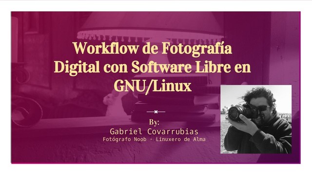 En esta presentación muestro el flujo de trabajo para fotografia utilizando únicamente Software Libre como Darktable, GIMP y Bash.