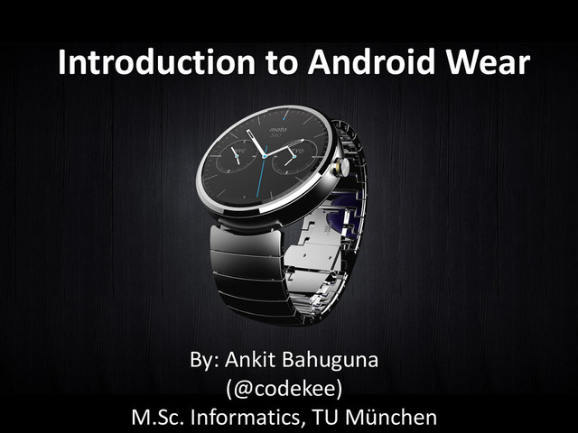 Lightning Talk on Android Wear - Google's upcoming OS platform for wearable devices. Delivered at: TU München, Android Praktikum SS2014