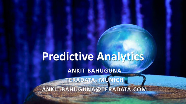 An Introduction to Predictive Analytics, delivered at Teradata Gmbh. Munich, Germany.