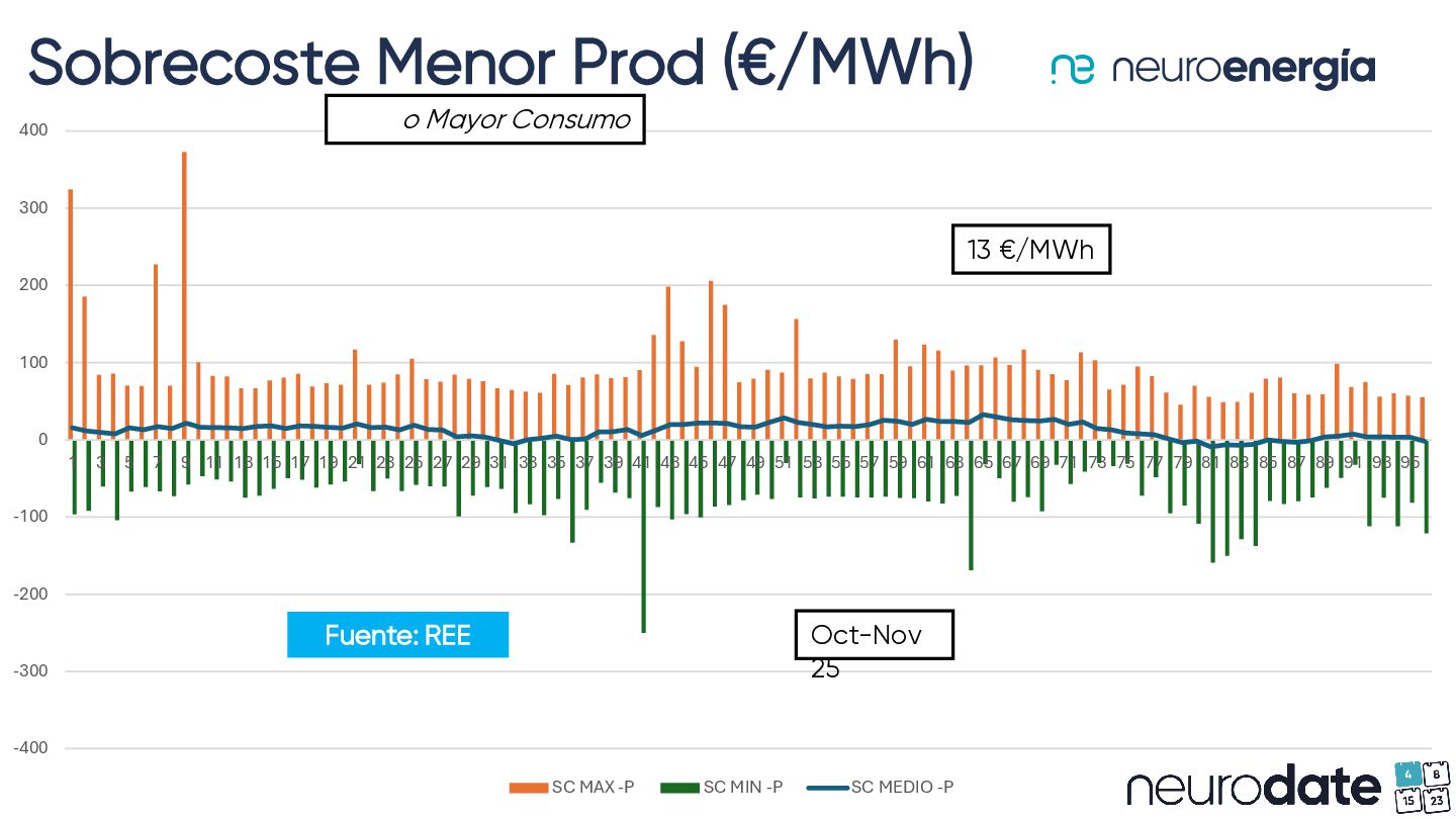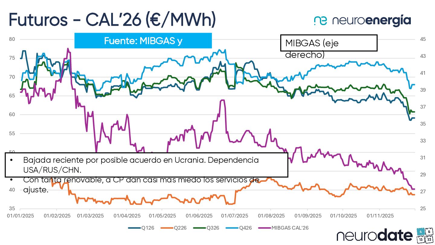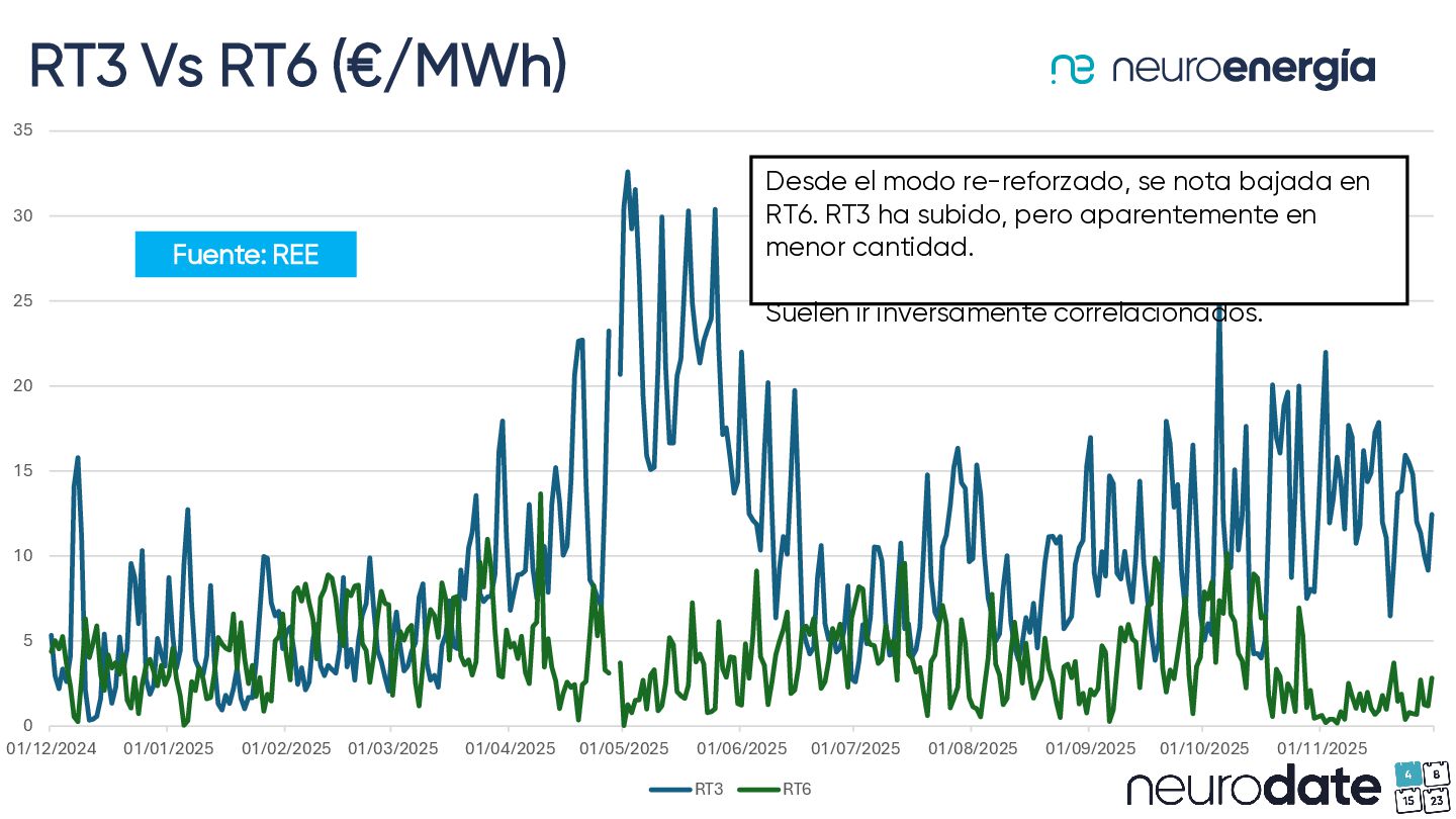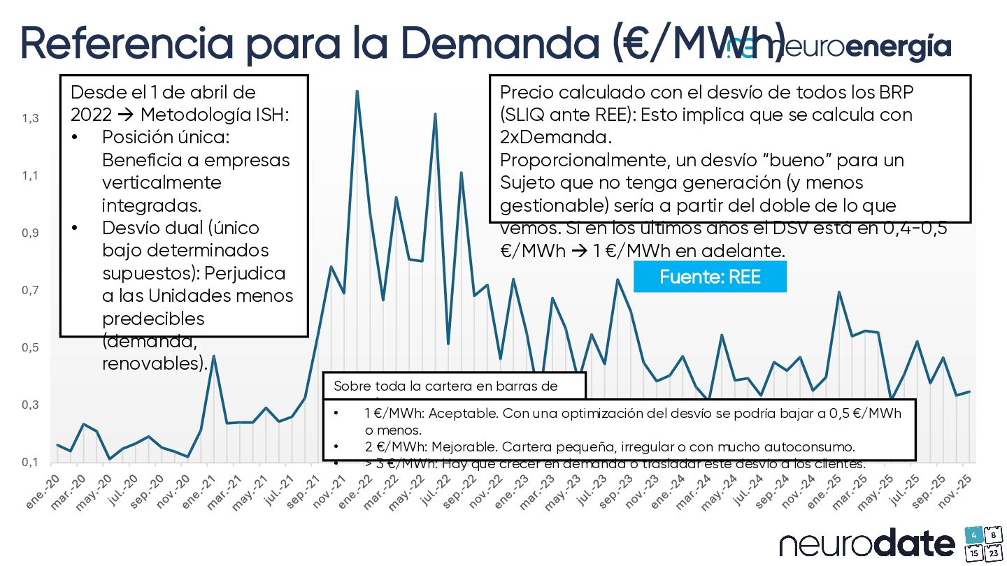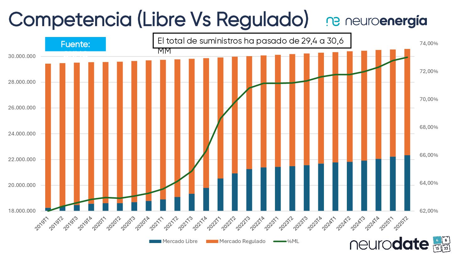 239 30,9% 2MET 153 364,7% 3NATURGY 115 8,8% 4AXPO IBERIA S.L.U 97 42,0% 5AUDAX 95 51,6% 6OCTOPUS ENERGY ESPAÑA, S.L 76 161,8% 7ENERGIES RENOVABLES PUBLIQUES DE CATALUNYA SAU 51 532,9% 8ENERGYA VM 45 31,0% 9FORTIA ENERGIA, S.L 42 8,3% 10FACTOR 33 26,4% 11VISALIA 32 40,9% 12ENERGÍA COLECTIVA S.L 26 59,8% 13ALPIQ ENERGÍA ESPAÑA, S.A.U 18 57,4% 14ENERGIA NUFRI SLU 18 50,0% 15ATLAS ENERGIA COMERCIAL 18 37,8% 16GESTERNOVA S.A 12 18,4% 17LUXIA ENERGIA Y CONSULTORES, S.L. 8 _ 18ATENCO ENERGIA SL 8 170,8% 19BON PREU, S.A.U 8 39,8% 20HANWHA ENERGY RETAIL SPAIN, S.L.U 7 40,6% 21ROFEICA ENERGIA, S.A 7 40,4% 22 COMERCIALIZADORA DE ELECTRICIDAD Y GAS DEL MEDITERRÁNEO S.L 7 50,2% 23RENOVAE 7 88,2% 24FUTURA GREEN RENOVABLES 7 _ 25ENERXIA GALEGA MAIS, S.L 6 39,4% 26ELECTRA CALDENSE ENERGIA, S.A 6 38,2% 27SWAP 5 28,3% 28POTENZIA COMERCIALIZADORA SL 5 28,5% 29GEO ALTERNATIVA SL 4 44,8% Incremento Consumo (%) 2.0 TD 5,00% 3.0 TD 5,00% 6.1 TD 1,50% 6.2 TD 0,00% 6.3 TD 1,50% 6.4 TD -1,00% DEMANDA 4,00% Comparativa: noviembre 2025 Vs 2024. El dato de Demanda es de REE (sin descontar nada). El valor por tarifa es estimación de Neuroenergía. Fuente: Elaboración propia con datos REE (p48)