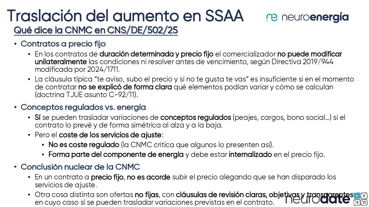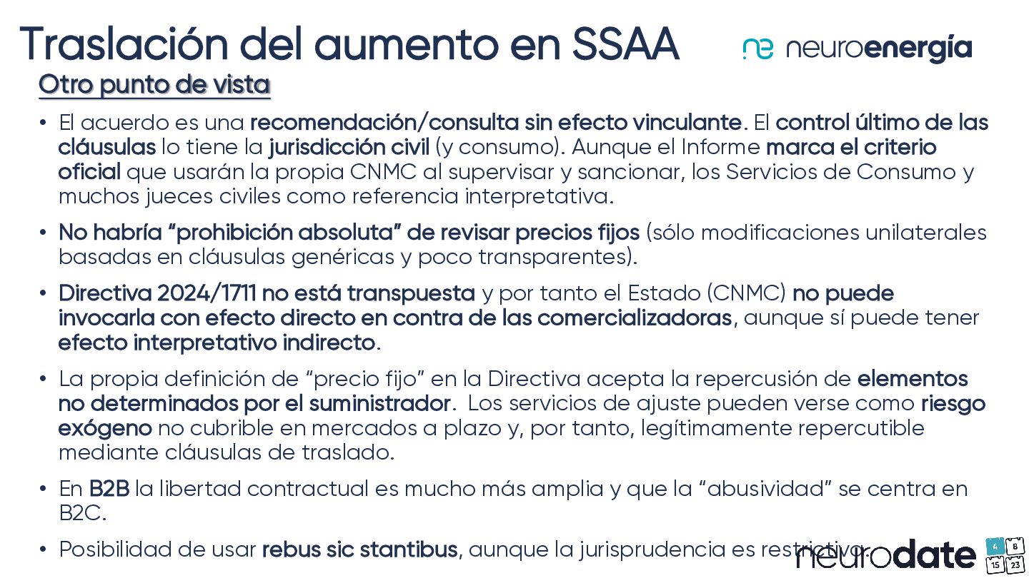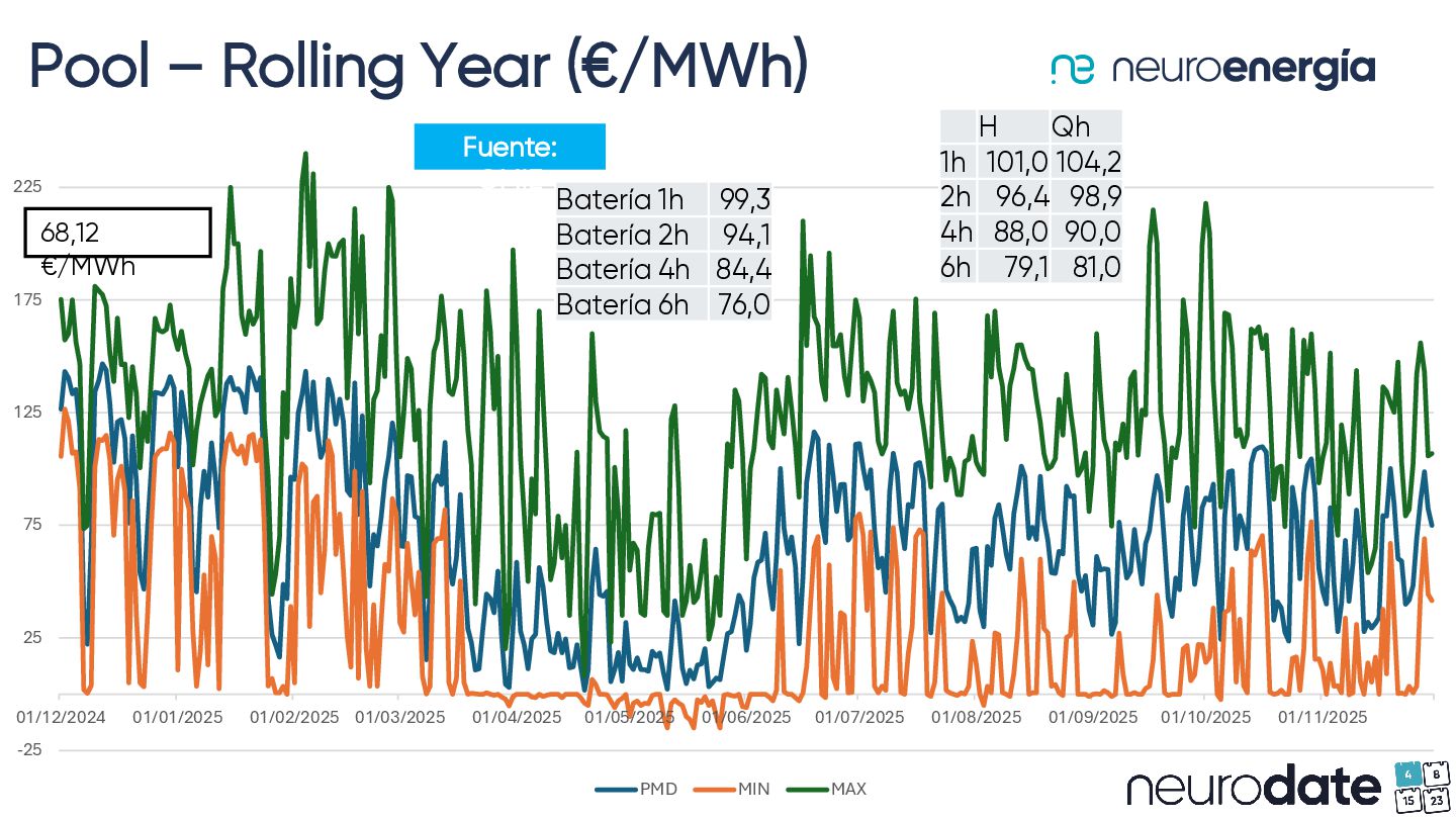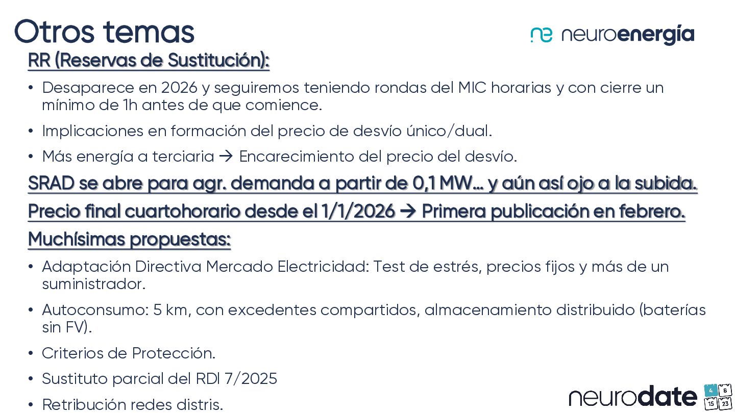 239 30,9% 2MET 153 364,7% 3NATURGY 115 8,8% 4AXPO IBERIA S.L.U 97 42,0% 5AUDAX 95 51,6% 6OCTOPUS ENERGY ESPAÑA, S.L 76 161,8% 7ENERGIES RENOVABLES PUBLIQUES DE CATALUNYA SAU 51 532,9% 8ENERGYA VM 45 31,0% 9FORTIA ENERGIA, S.L 42 8,3% 10FACTOR 33 26,4% 11VISALIA 32 40,9% 12ENERGÍA COLECTIVA S.L 26 59,8% 13ALPIQ ENERGÍA ESPAÑA, S.A.U 18 57,4% 14ENERGIA NUFRI SLU 18 50,0% 15ATLAS ENERGIA COMERCIAL 18 37,8% 16GESTERNOVA S.A 12 18,4% 17LUXIA ENERGIA Y CONSULTORES, S.L. 8 _ 18ATENCO ENERGIA SL 8 170,8% 19BON PREU, S.A.U 8 39,8% 20HANWHA ENERGY RETAIL SPAIN, S.L.U 7 40,6% 21ROFEICA ENERGIA, S.A 7 40,4% 22 COMERCIALIZADORA DE ELECTRICIDAD Y GAS DEL MEDITERRÁNEO S.L 7 50,2% 23RENOVAE 7 88,2% 24FUTURA GREEN RENOVABLES 7 _ 25ENERXIA GALEGA MAIS, S.L 6 39,4% 26ELECTRA CALDENSE ENERGIA, S.A 6 38,2% 27SWAP 5 28,3% 28POTENZIA COMERCIALIZADORA SL 5 28,5% 29GEO ALTERNATIVA SL 4 44,8% Incremento Consumo (%) 2.0 TD 5,00% 3.0 TD 5,00% 6.1 TD 1,50% 6.2 TD 0,00% 6.3 TD 1,50% 6.4 TD -1,00% DEMANDA 4,00% Comparativa: noviembre 2025 Vs 2024. El dato de Demanda es de REE (sin descontar nada). El valor por tarifa es estimación de Neuroenergía. Fuente: Elaboración propia con datos REE (p48)