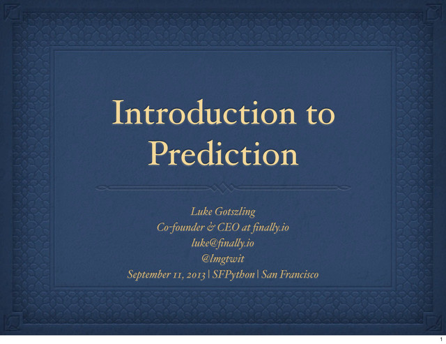 Introduction to Prediction Luke Gotszling Co-founder & CEO at fina"y.io