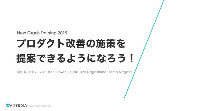 Wantedly New Grads Training 2019の講座「プロダクト改善の施策を提案できるようになろう!」のKeynoteです。この講座では、グロースのサイクルの回し方と施策提案の方法について詳しく説明しています。