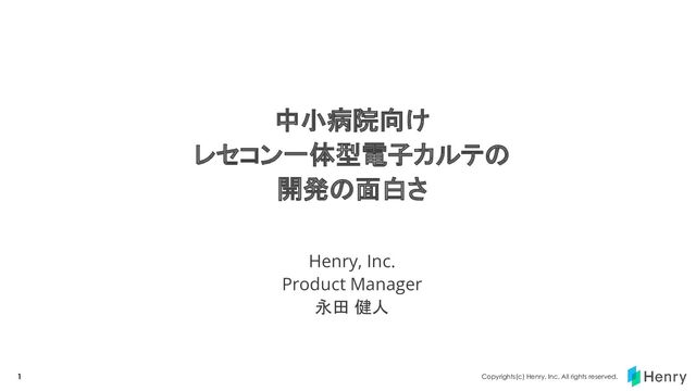 rights reserved. 1 Copyrights(c) Henry, Inc. All rights reserved. 中小病院向け レセコン一体型電子カルテの 開発の面白さ Henry, Inc. Product Manager 永田 健人