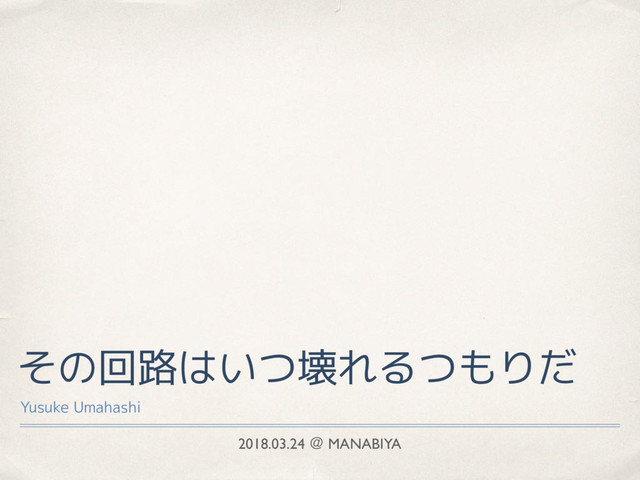 2018.03.24 ˏ MANABIYA その回路はいつ壊れるつもりだ Yusuke Umahashi