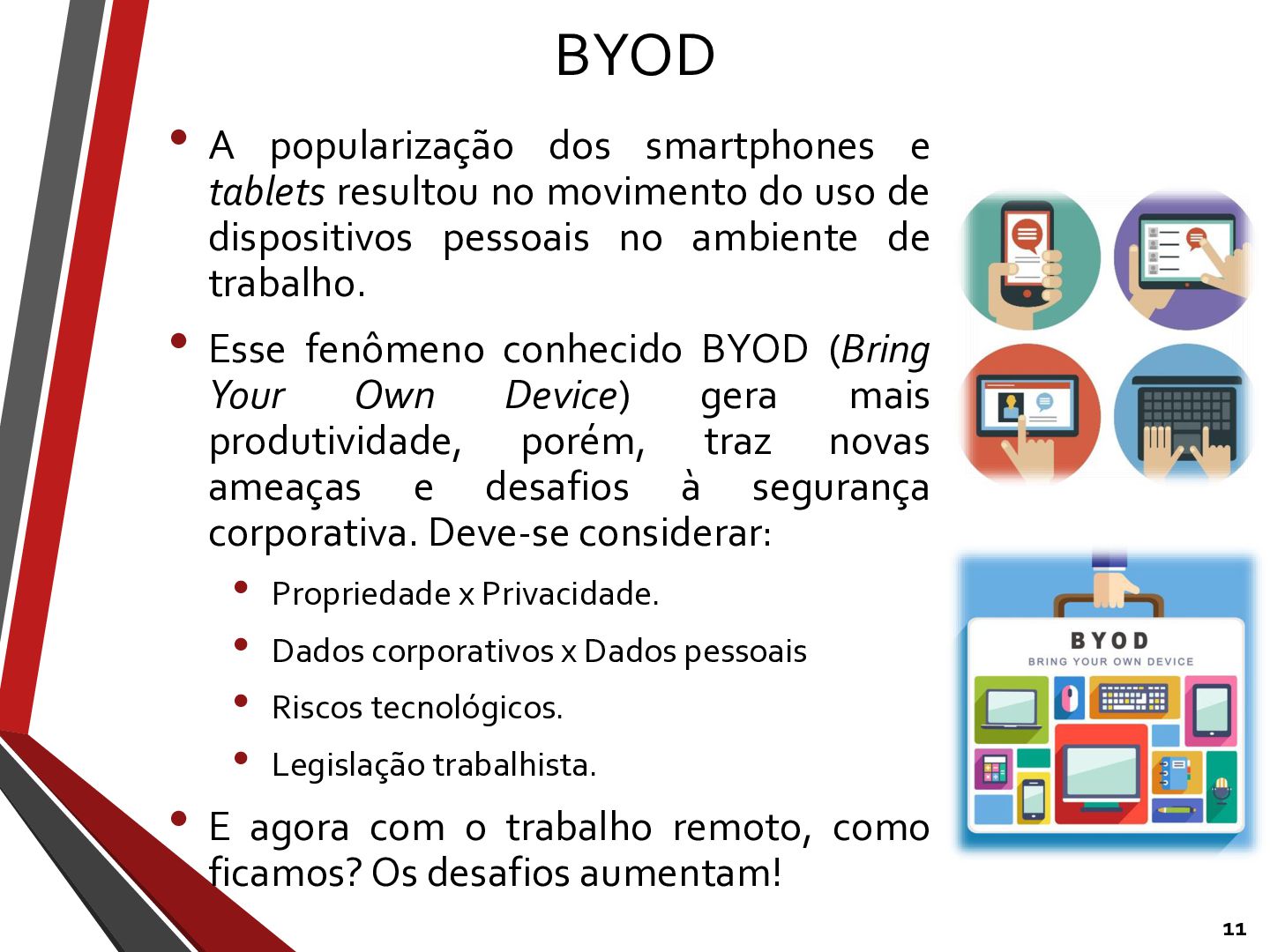 8. BYOD • A popularização dos smartphones e tablets resultou no