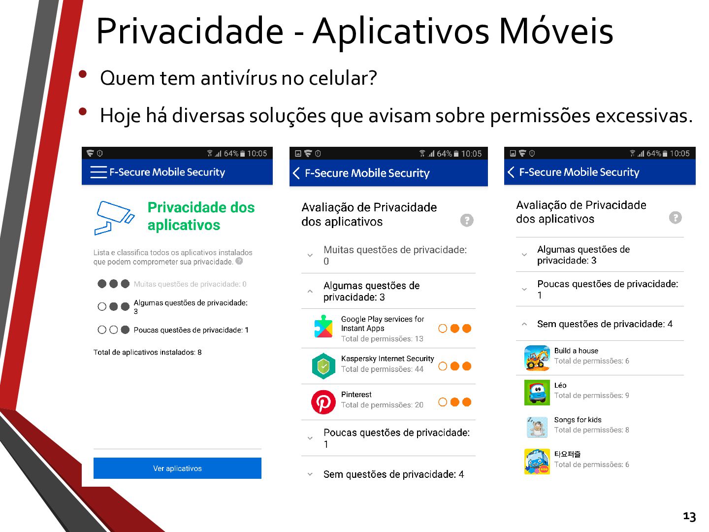 10. Privacidade - Aplicativos Móveis • Quem tem antivírus no celular?