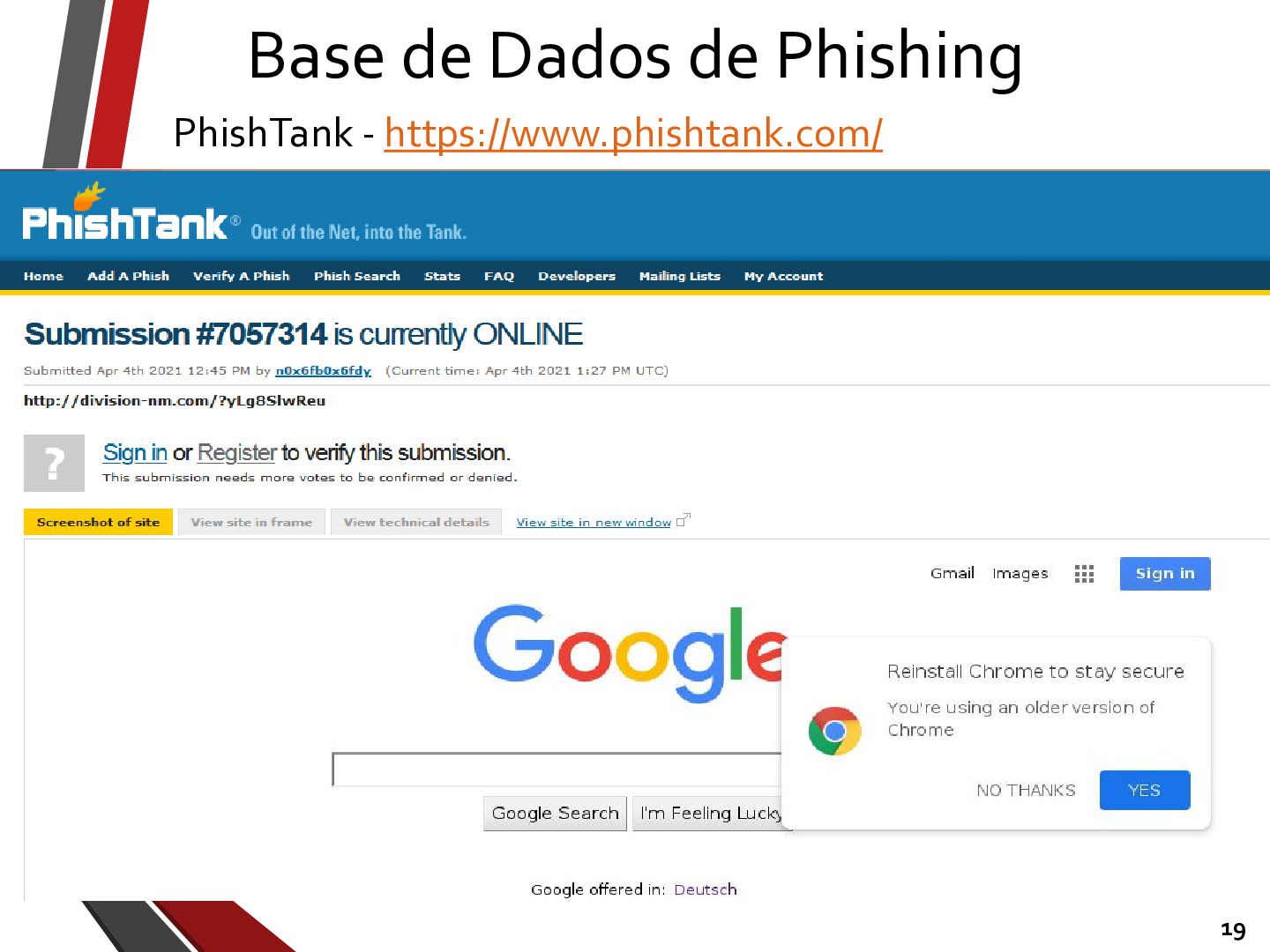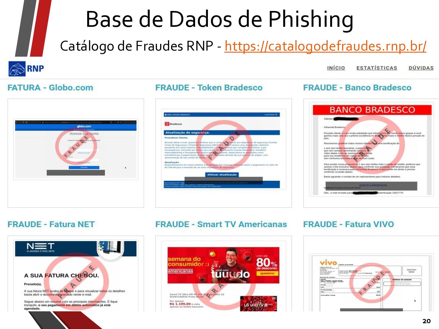 14. Base de Dados de Phishing 20 Catálogo de Fraudes RNP