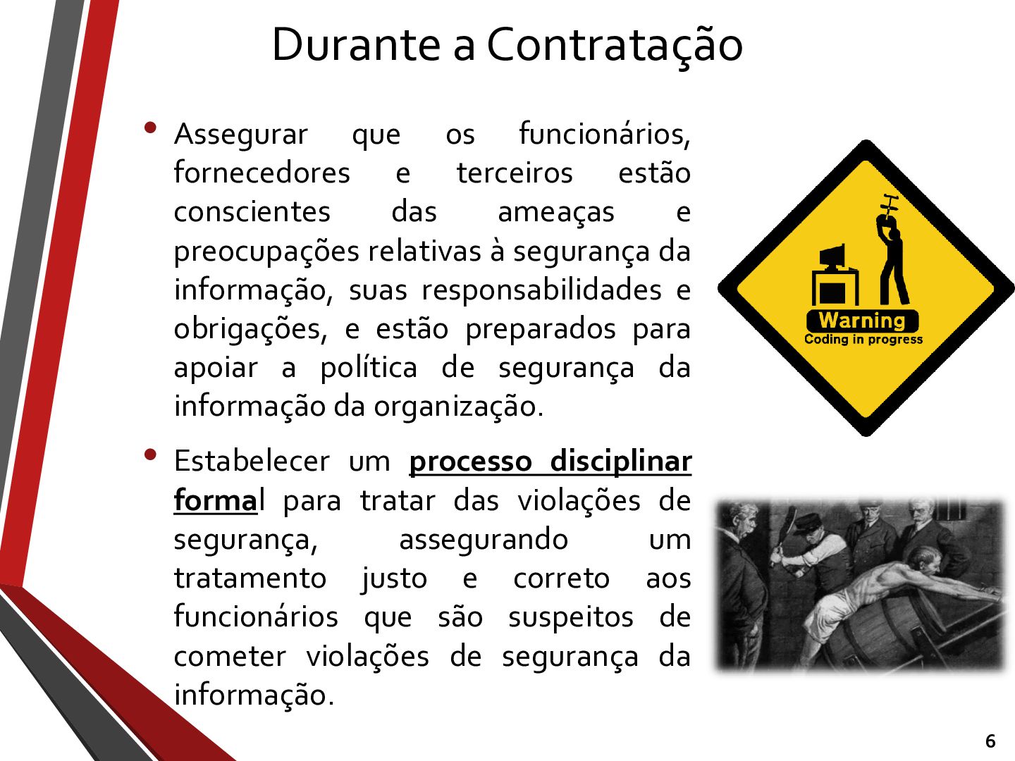 4. Durante a Contratação • Assegurar que os funcionários, fornecedores e