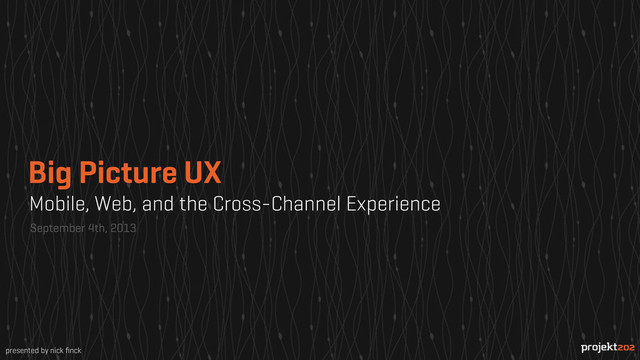 As the field of UX professionals matures and the disciplines of interaction design, information architecture, user research, user interface design, and usability evolve to support modern technology we need to start looking at the big picture of UX. We need to go back to the roots of what UX means and how we should approach UX challenges.