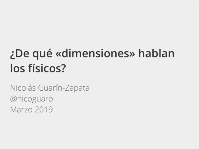 Esta charla presenta el concepto de dimensión en física desde una noción geométrica. Tratando de guiar la intuición de dimensiones de orden inferior para entender lo qué pasa en dimensiones de orden mayor.