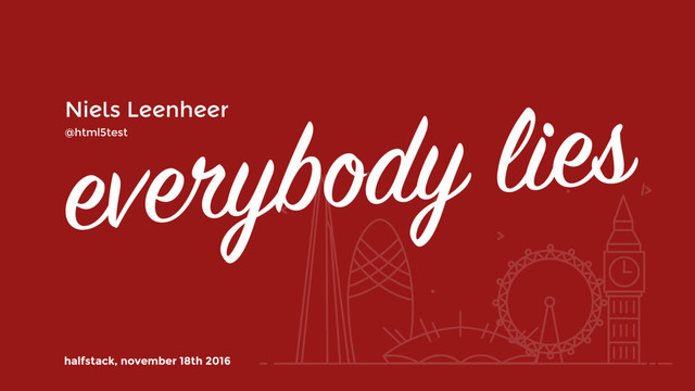 This is a talk about browser sniffing. And yes, I do realise it is 2016. I know browser sniffing is ugly and we should all be using feature detection. But a quick search on Github still shows millions of lines of code referring to user agents strings. So this message clearly hasn’t landed yet. But why is browser sniffing a bad choice? This talk will dive into history and show the origin of the user agent string and the hidden battle between browser makers and web developers. It will show its simple beginnings and the horrible monstrosity it has become.
