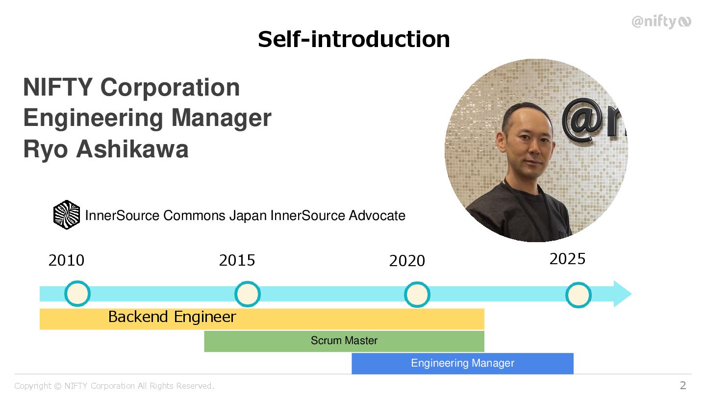on a 1- person advocate Let's create some in-house achievements with something simple Call other EMs and include it in the business plan to involve them Let's get the word out first among all the LT engineers Let's clarify the evaluation criteria for contributors Let's clarify the labor accounting for contributors Let's give shy engineers the experience of external speaking engagements Let's inform the company internally and foster a sense of commitment I want to let the members experience the joy of connecting with people Good job, it has spread throughout the company. Let's commit to engaging in external activities within our work Create a cross- departmental promoter group Continue to include in the business plan and be aware of the promotional activities themselves Integrate into the promoter's plan Evaluate the promoter The journey of NIFTY’s InnerSource