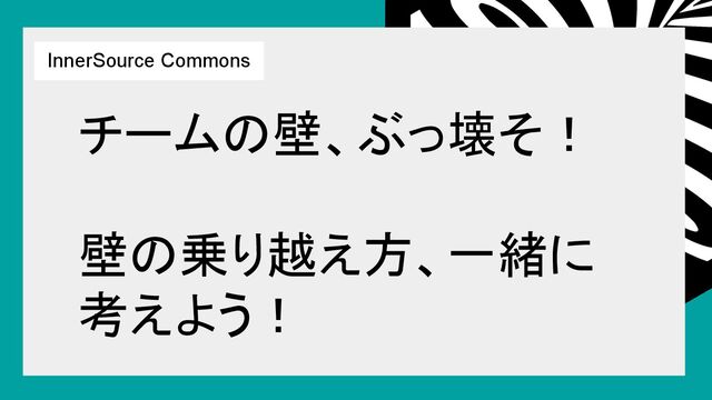 チームの壁、ぶっ壊そ! 壁の乗り越え方、一緒に 考えよう! InnerSource Commons