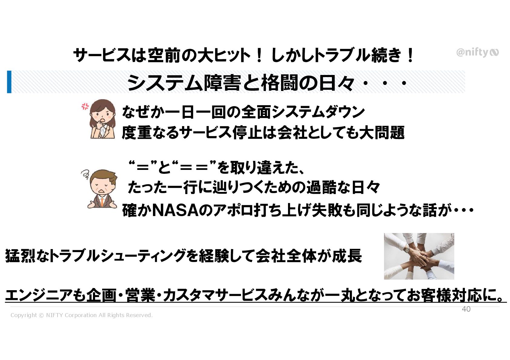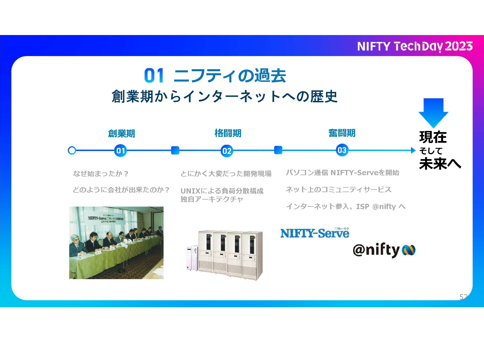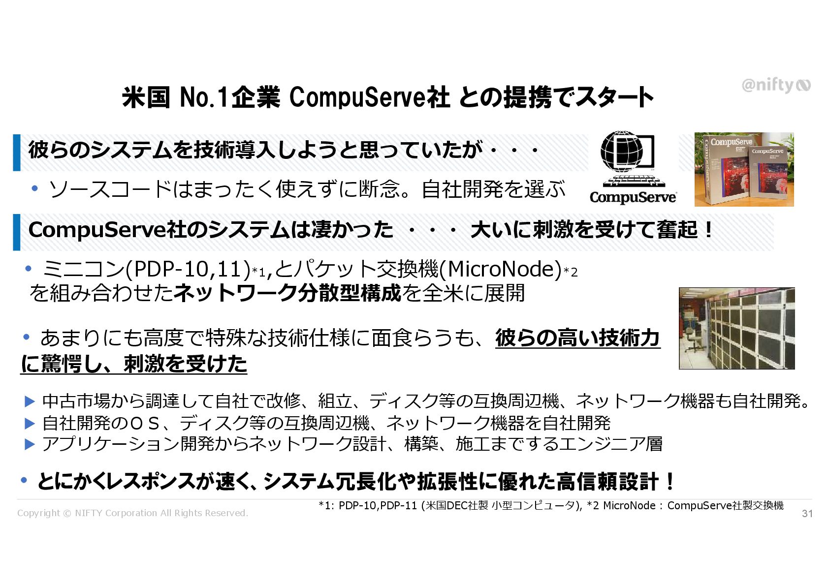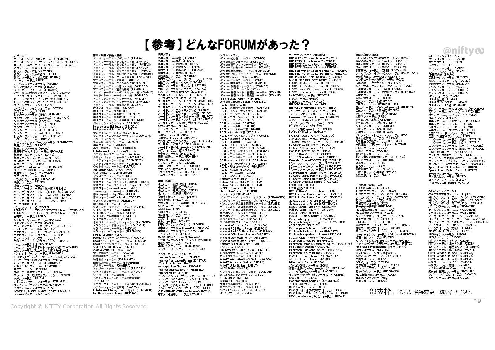 (複数サーバで分散処理) ②故障時の影響を最小化 (容易にメンテナンス可能) ③投資コスト最適化 (安価な機器で構成) システム構成: ネットワーク分散型 (UNIX分散型) FEP *1: ユーザインタフェース, 負荷分散 , BEP *2: サービスアプリケーション, ゲートウェイ サーバ機: PFU A-30 (CPU: MC68010 10MHz, メモリ 8MB) (OS: UNIX System V系 SX/A) ネットワークプロトコル: Ethernet, TCP/IP, X.25, X.28, X.29, X.3・・・ サーバー間プロトコル: 独自プロセス間メッセージ 独自分散型ファイルシステム RFS 端末間プロトコル: TTY (X-MODEM , B-Plus対応) 文字コード体系: ASCII , JISコード , シフトJIS 開発言語: C言語 FEP BEP 全国電話網 【システム構成】 STRAGE *1:FEP: Front End Processer *2:BEP: Back End Processor *1 *2 最初の難関、システムアーキテクチャが決まった (Remote File System)