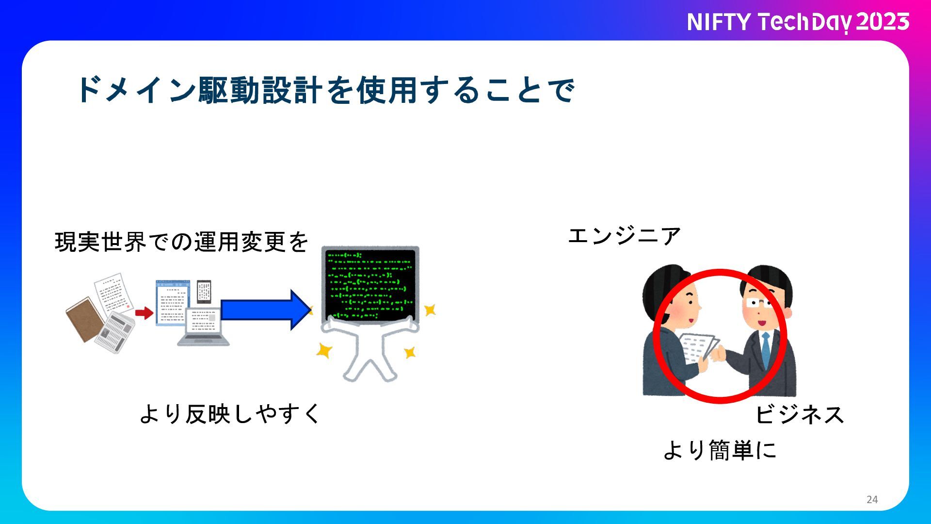 ドメイン駆動設計を使用することで 24 現実世界での運用変更を より反映しやすく エンジニア ビジネス より簡単に