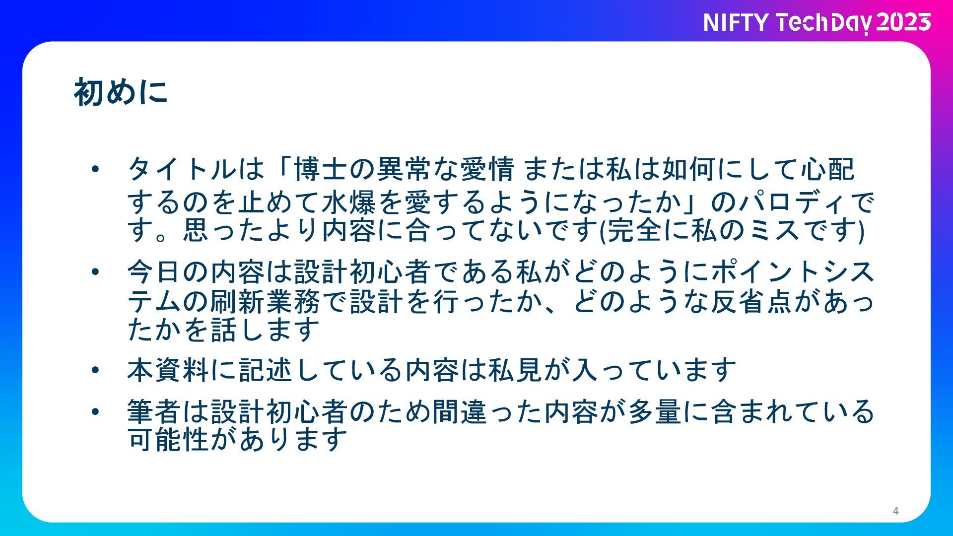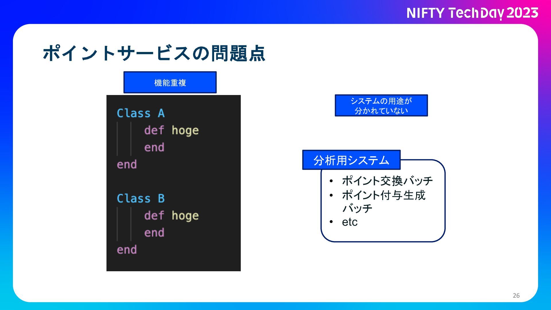 ポイントサービス設計の異常な挑戦 または我々は如何にして心配するのを止めてドメイン駆動設計を愛するようになったか - NIFTY Tech Day 2023