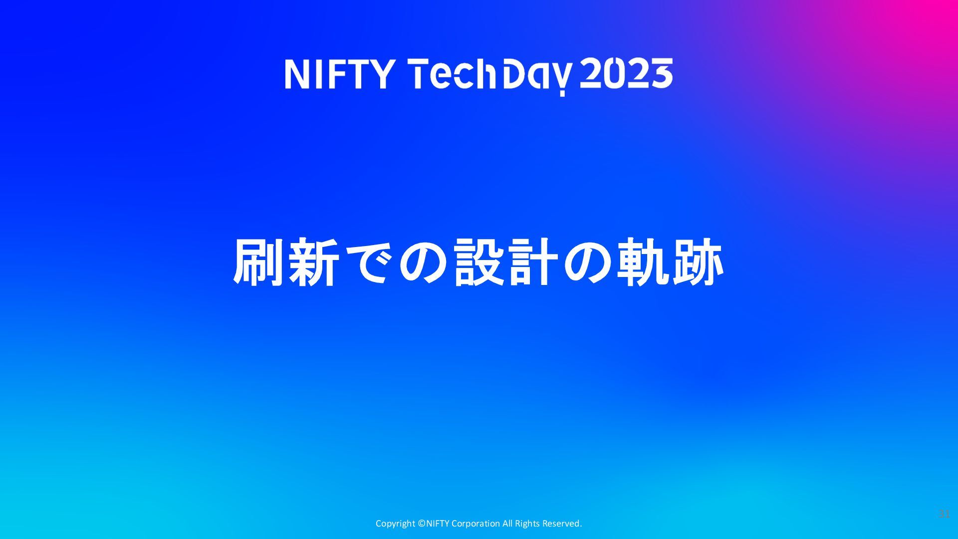 Copyright ©NIFTY Corporation All Rights Reserved. 刷新での設計の軌跡 31