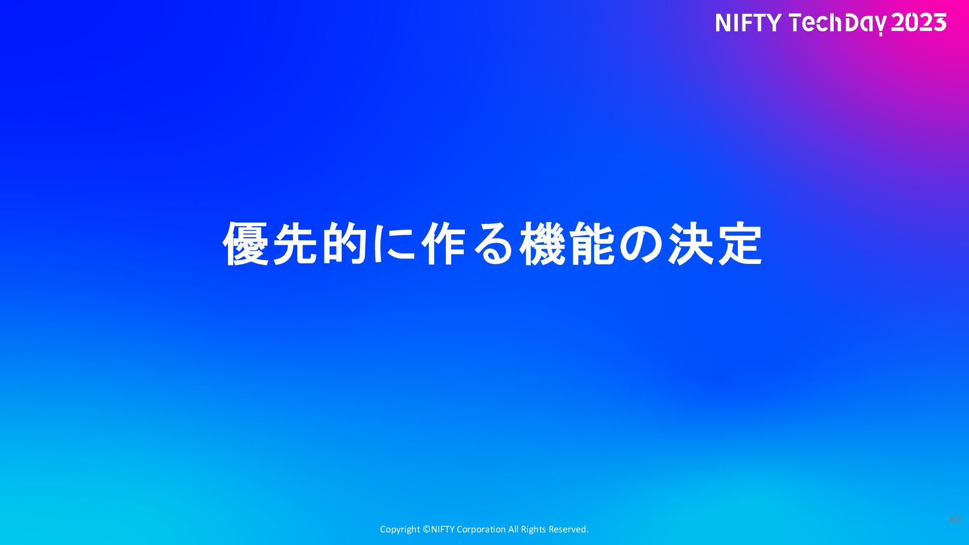Copyright ©NIFTY Corporation All Rights Reserved. 優先的に作る機能の決定 42