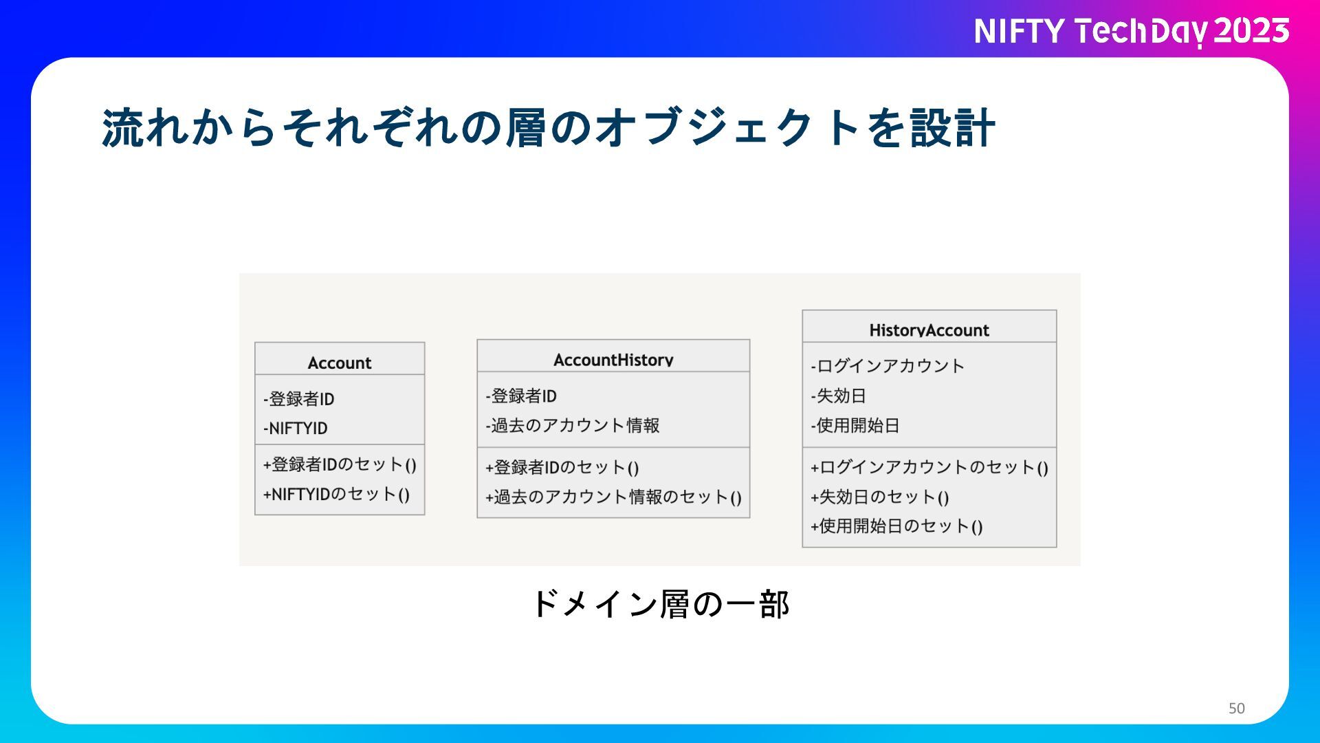 流れからそれぞれの層のオブジェクトを設計 50 ドメイン層の一部