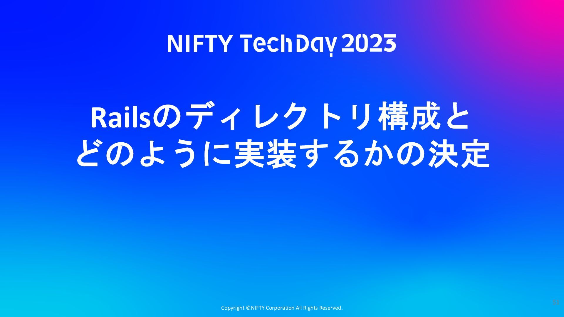 Copyright ©NIFTY Corporation All Rights Reserved. Railsのディレクトリ構成と どのように実装するかの決定 51