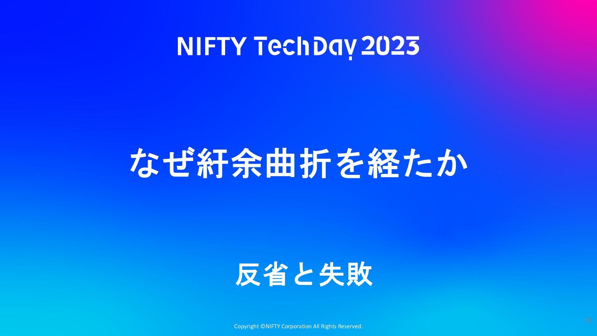 Copyright ©NIFTY Corporation All Rights Reserved. なぜ紆余曲折を経たか 反省と失敗 58